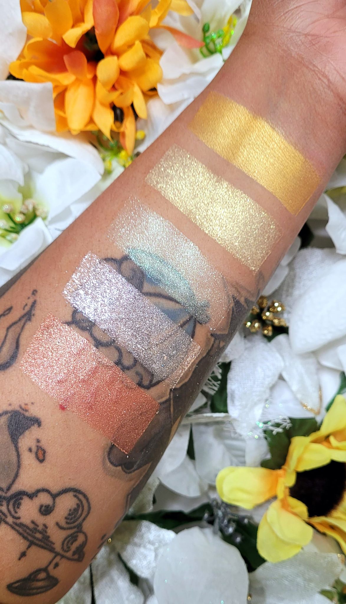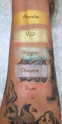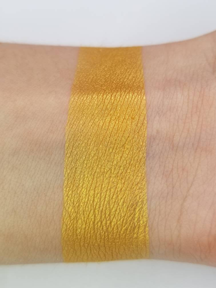 Aurelia is a gorgeous gold eye shadow with a shimmery metallic shine. Each eyeshadow pan is magnetic and comes in 26mm, the size of a quarter. This is a pressed product, making it easy to apply with your favorite brush or even your finger.