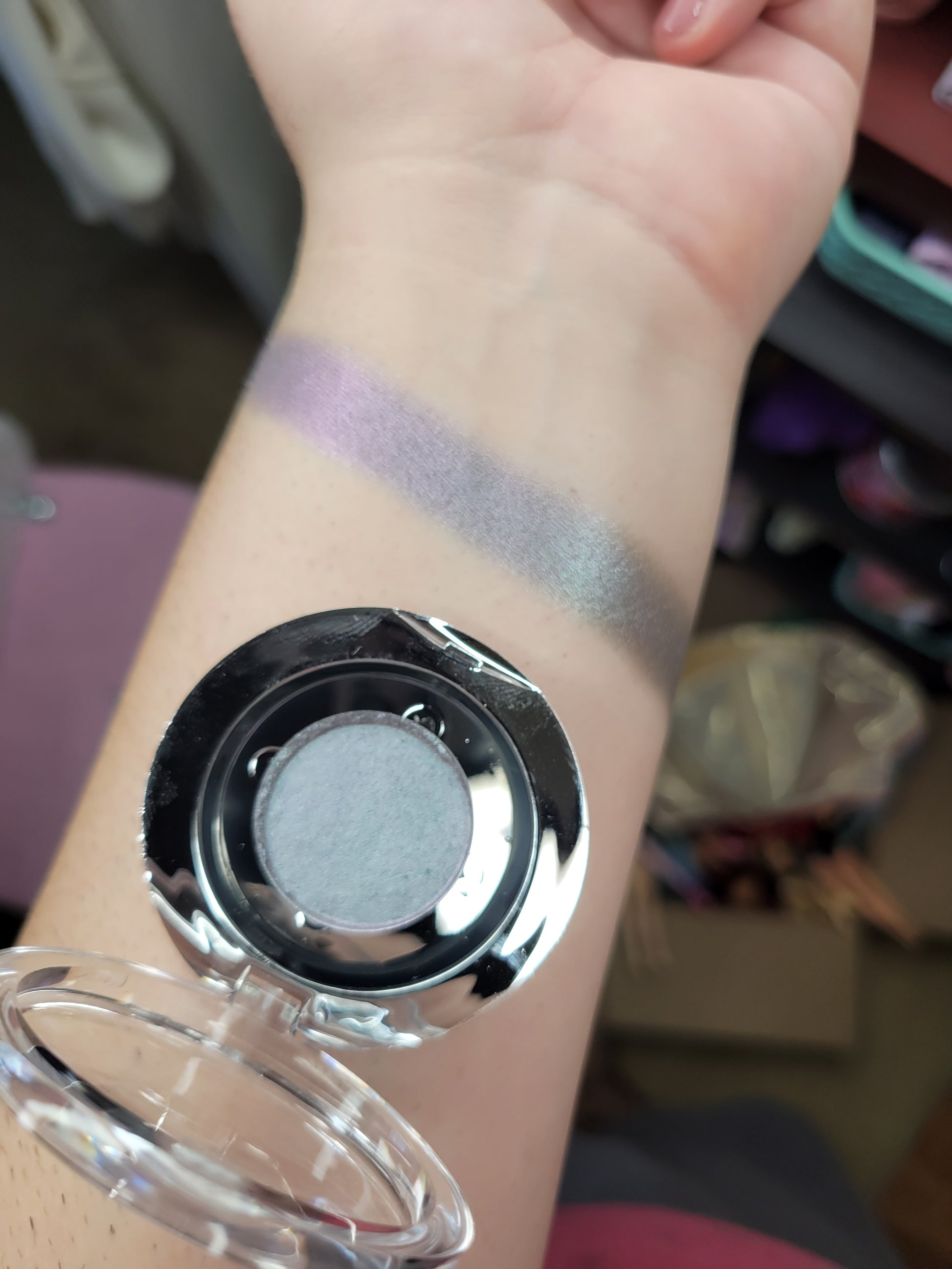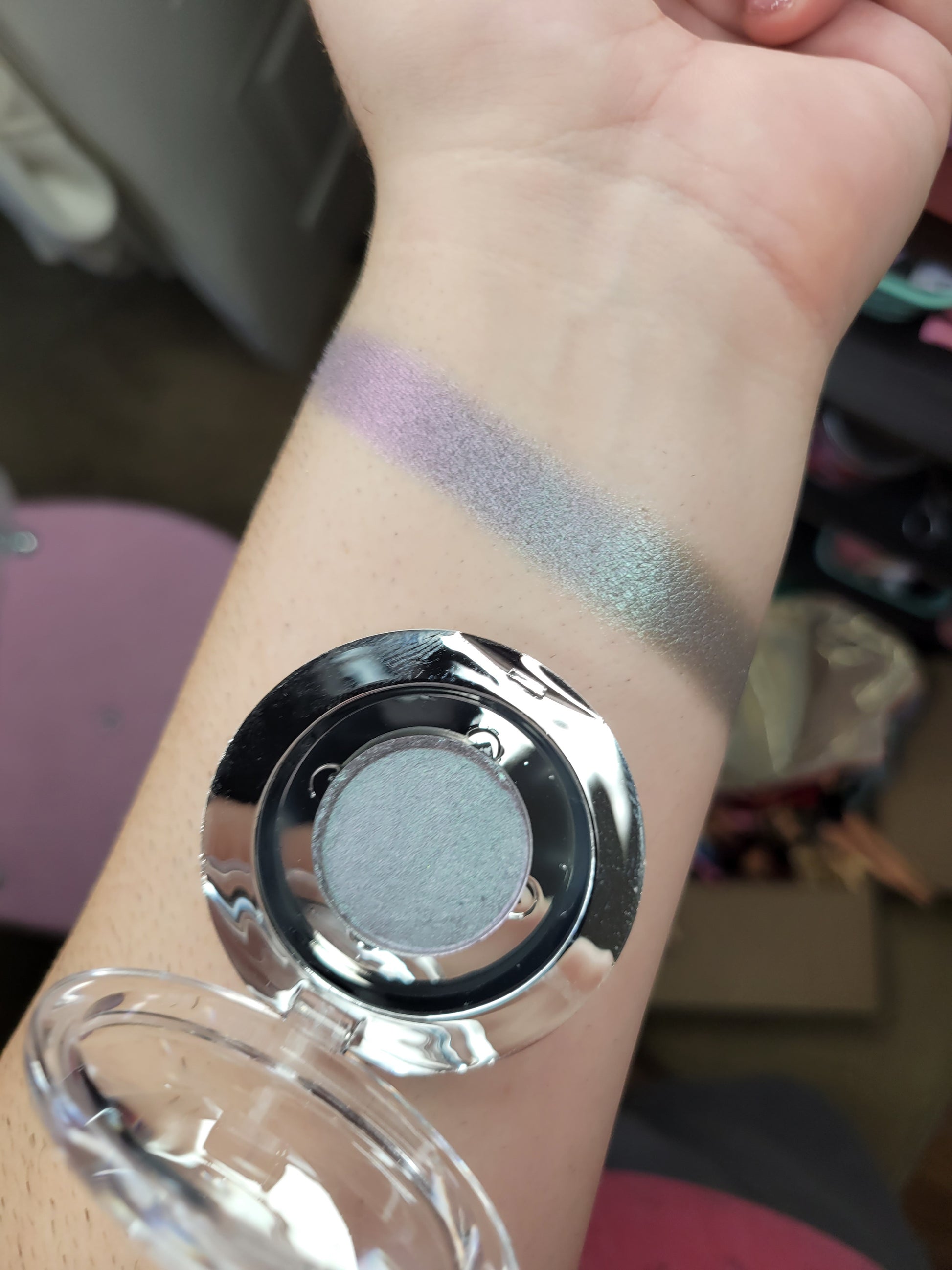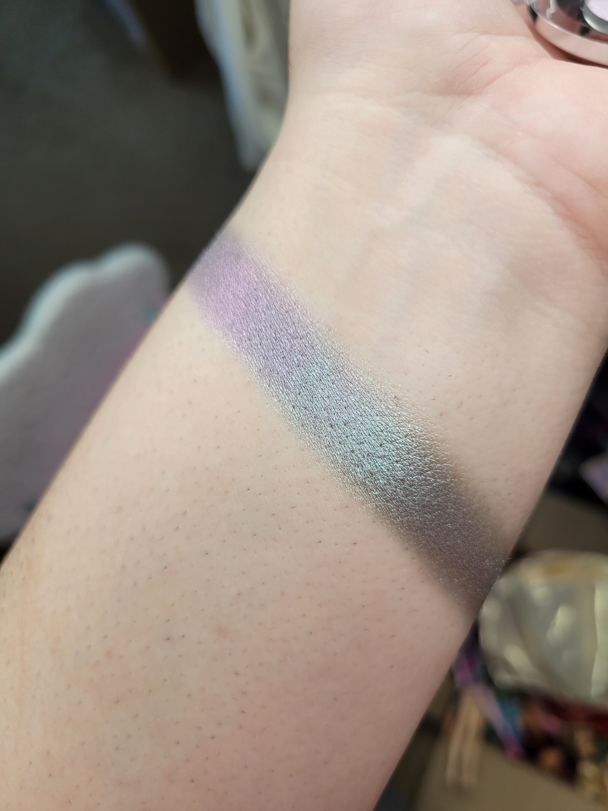 Bruxa is a satin multichrome with a blackened base that shifts from a green, silver, and a pinkish red. Each pan is magnetic and comes in 26mm size. This is a pressed product, making it easy to apply with your favorite brush or even your finger.