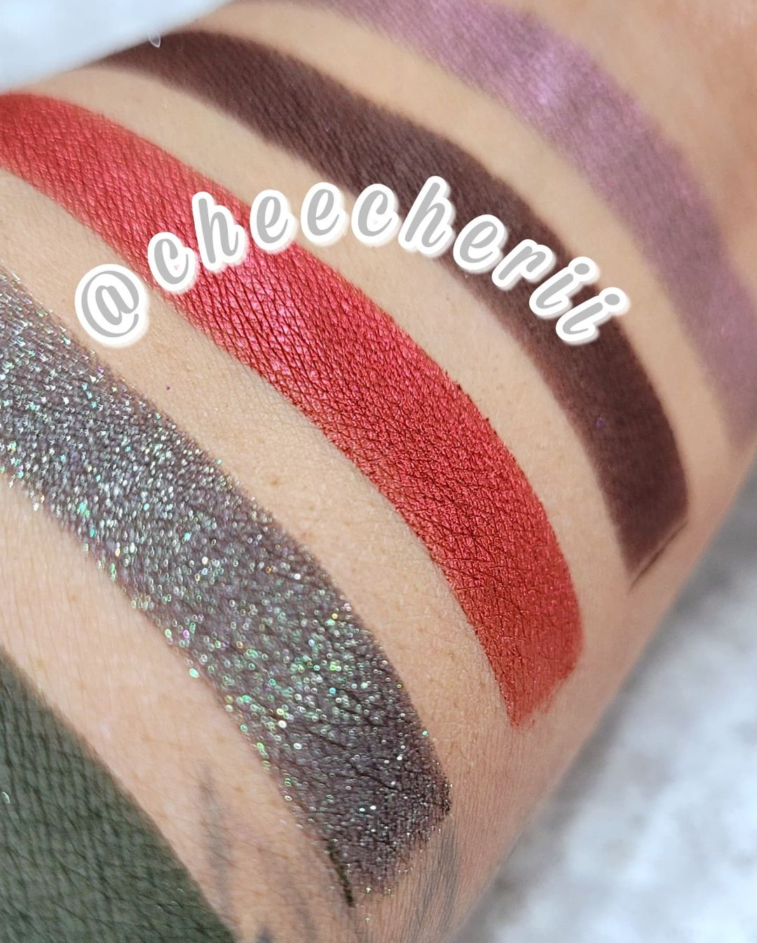 Carrie is a vibrant red crimson eyeshadow! Each eyeshadow pan is magnetic and comes in 26mm, the size of a quarter. This is a pressed eyeshadow, making it easy to apply with your favorite brush or even your finger.