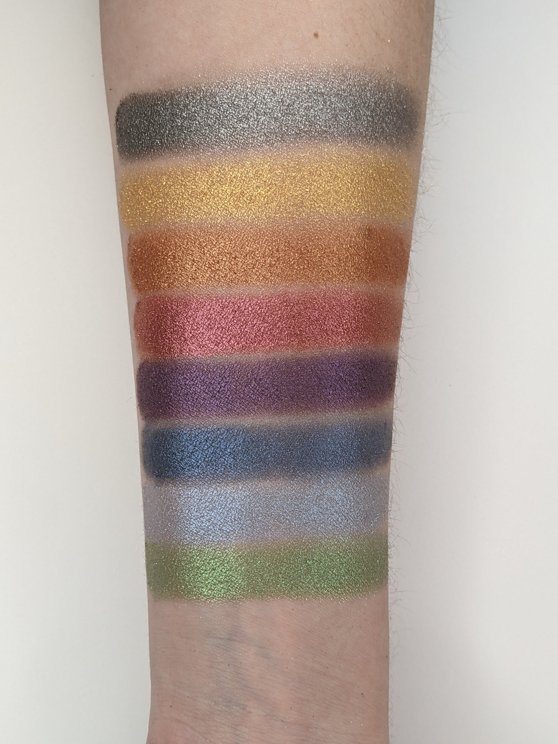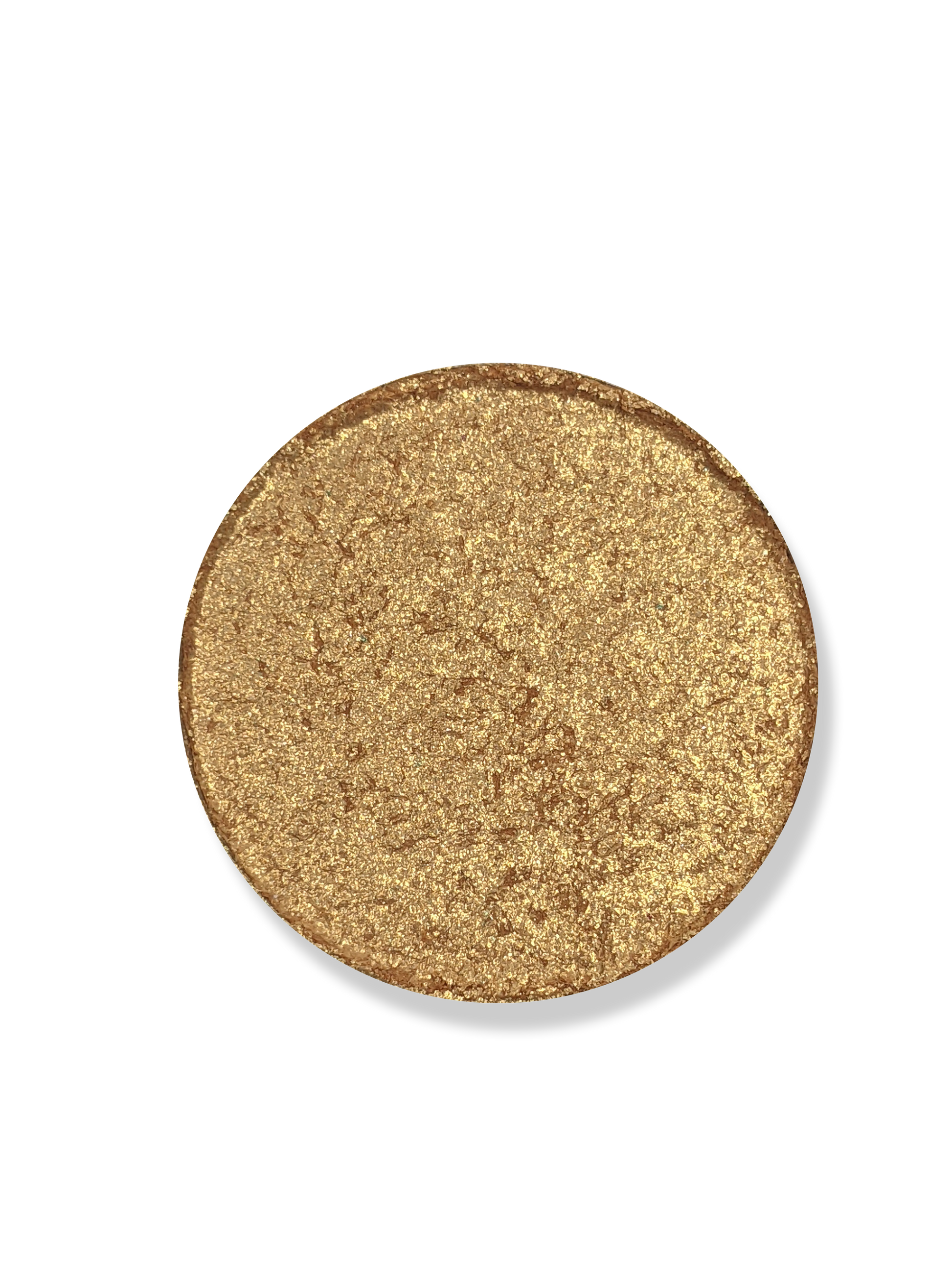 Coin is a light gold shimmer with bright golden sparkles. Made with an extra boost of natural mineral glitter giving this a beautiful shine! Each eyeshadow pan is magnetic and comes in 26mm, the size of a quarter. This is a pressed product, making it easy to apply with your favorite brush or even your finger.