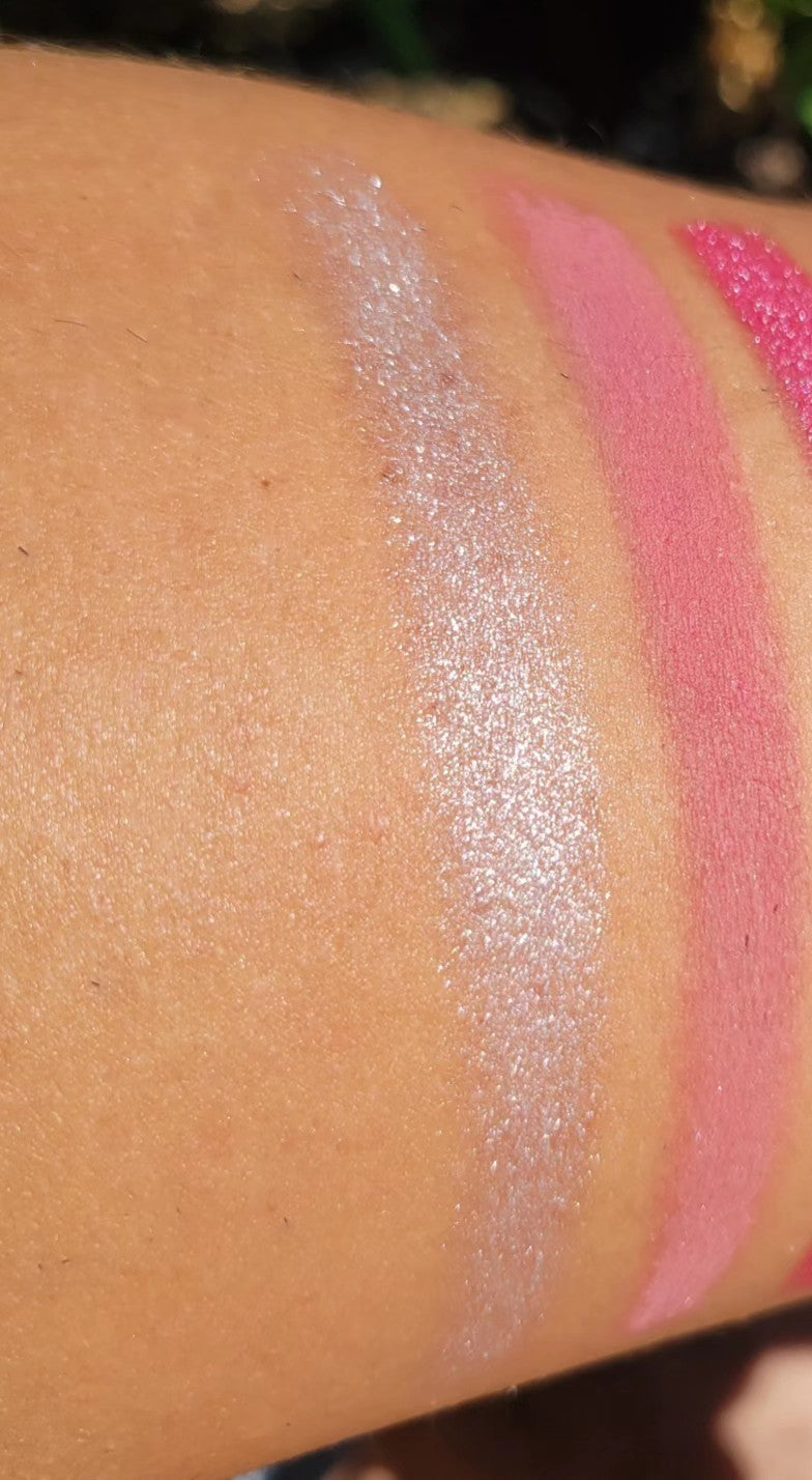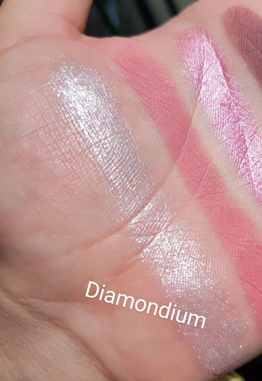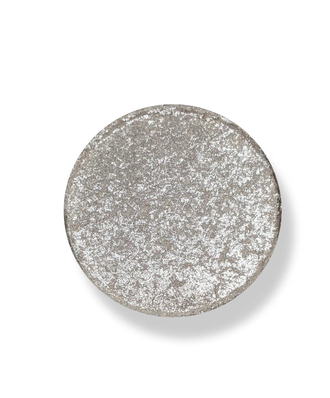 Diamondium is a translucent "glitter" eyeshadow packed with silver white sparkles! It will go on more sheer at first but very build-able. A primer will really make this shade POP! This eyeshadow doesn't have any prominent pigment behind it making it perfect for an inner corner/brow highlight, or even use it on the cheek for an intense sparkly glow. Alternatively you can also use this on top of other shades to add some dimension, or even alone on the lid for a simple and reflective look! Please note this shade does not contain any actual glitter or plastic, its all just the mica. :) Each eyeshadow pan is magnetic and comes in 26mm, the size of a quarter. This is a pressed product, making it easy to apply with your favorite brush or even your finger.