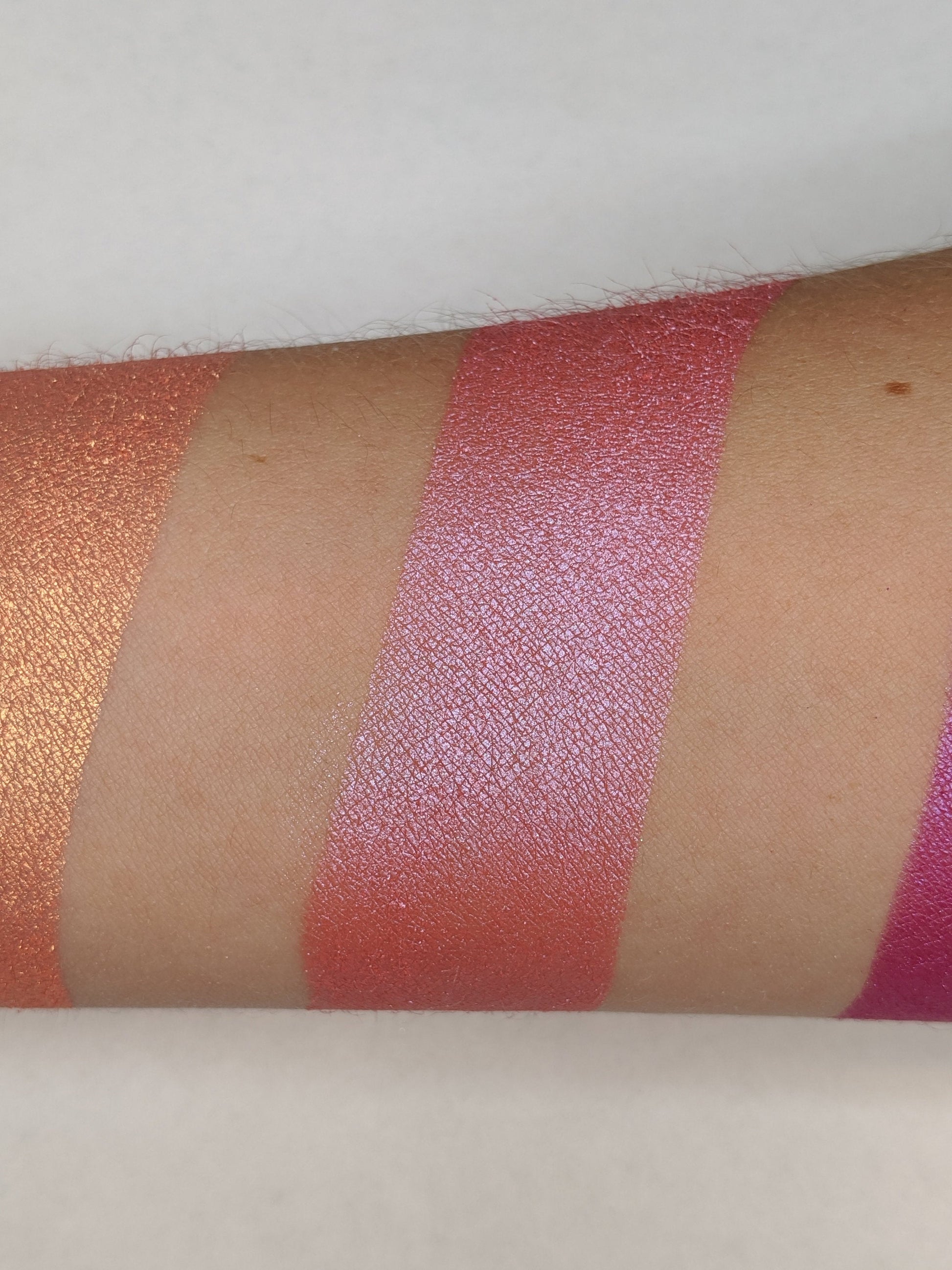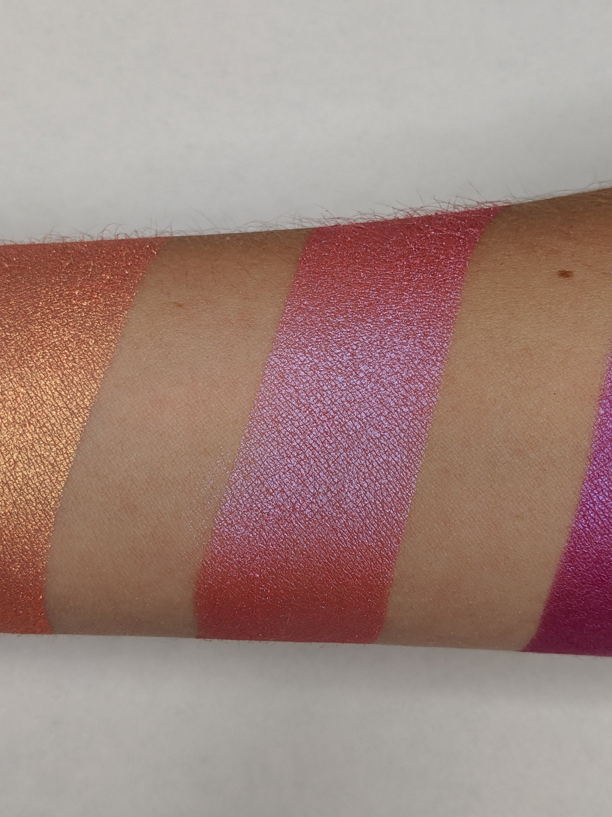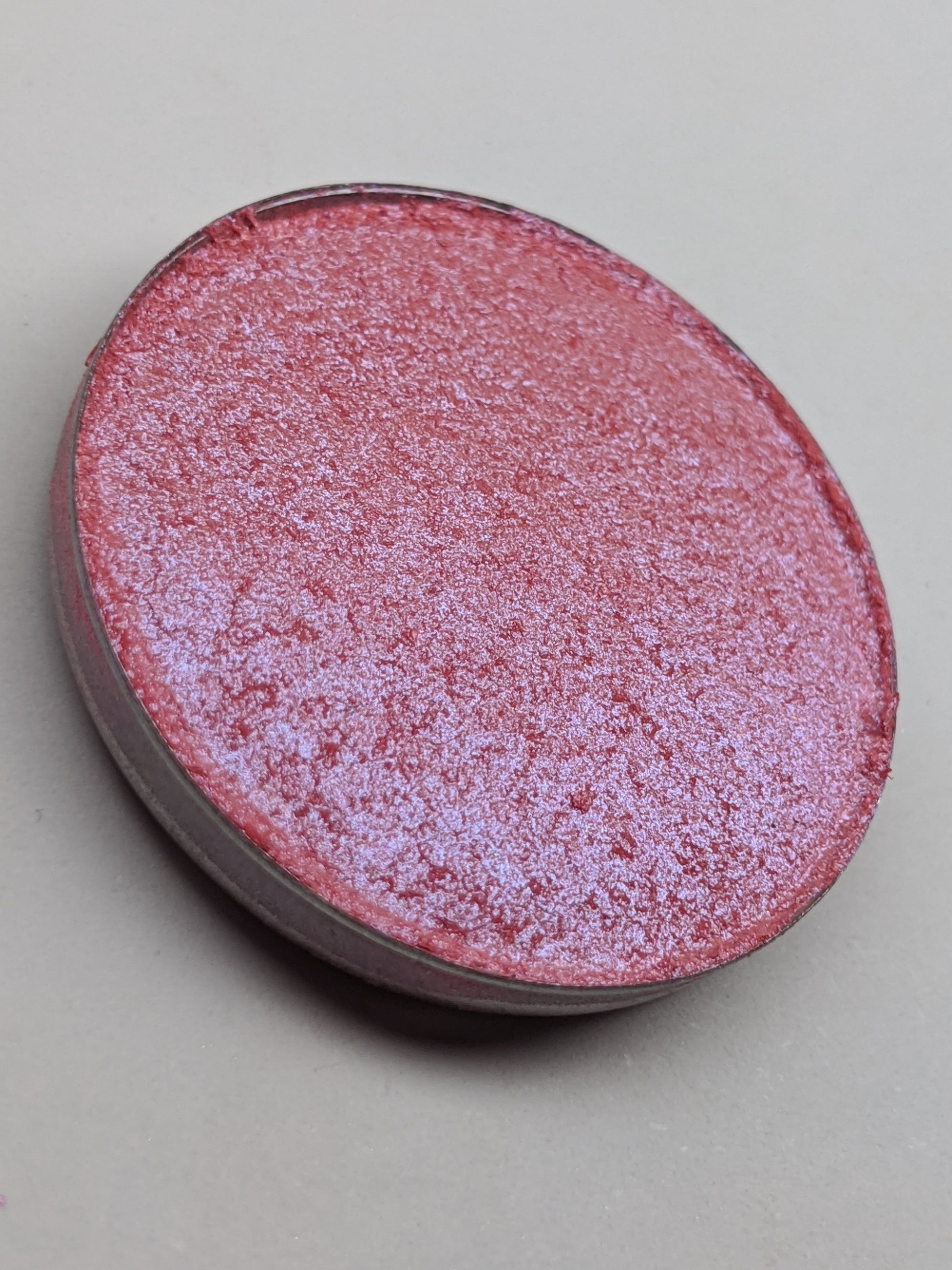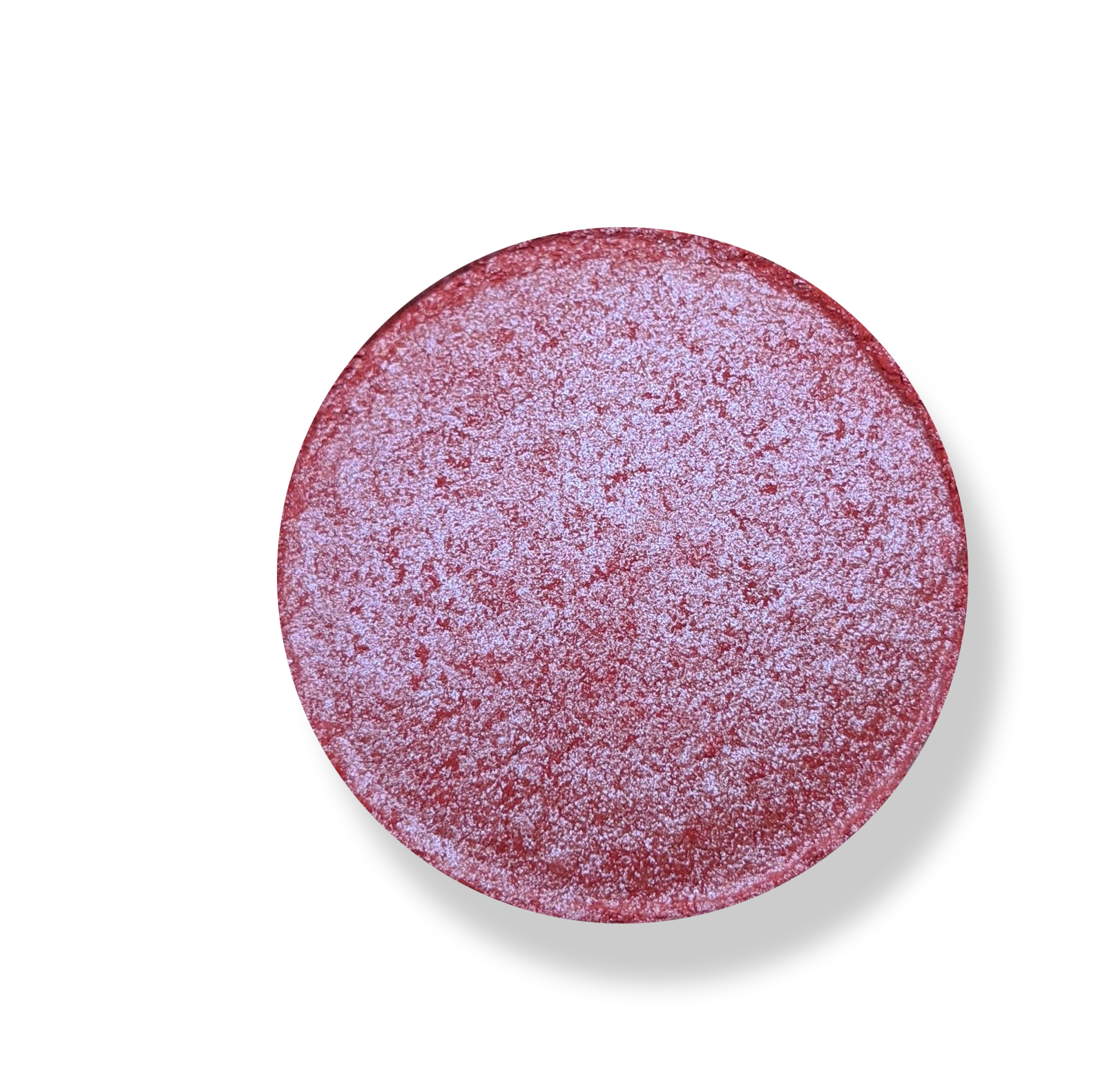 Welcome to Barbies Dreamhouse! This lovely duochrome shade shifts between a shimmery pink and violet blue creating such a beautiful eyeshadow! Each eyeshadow pan is magnetic and comes in 26mm, the size of a quarter. This is a pressed product, making it easy to apply with your favorite brush or even your finger.