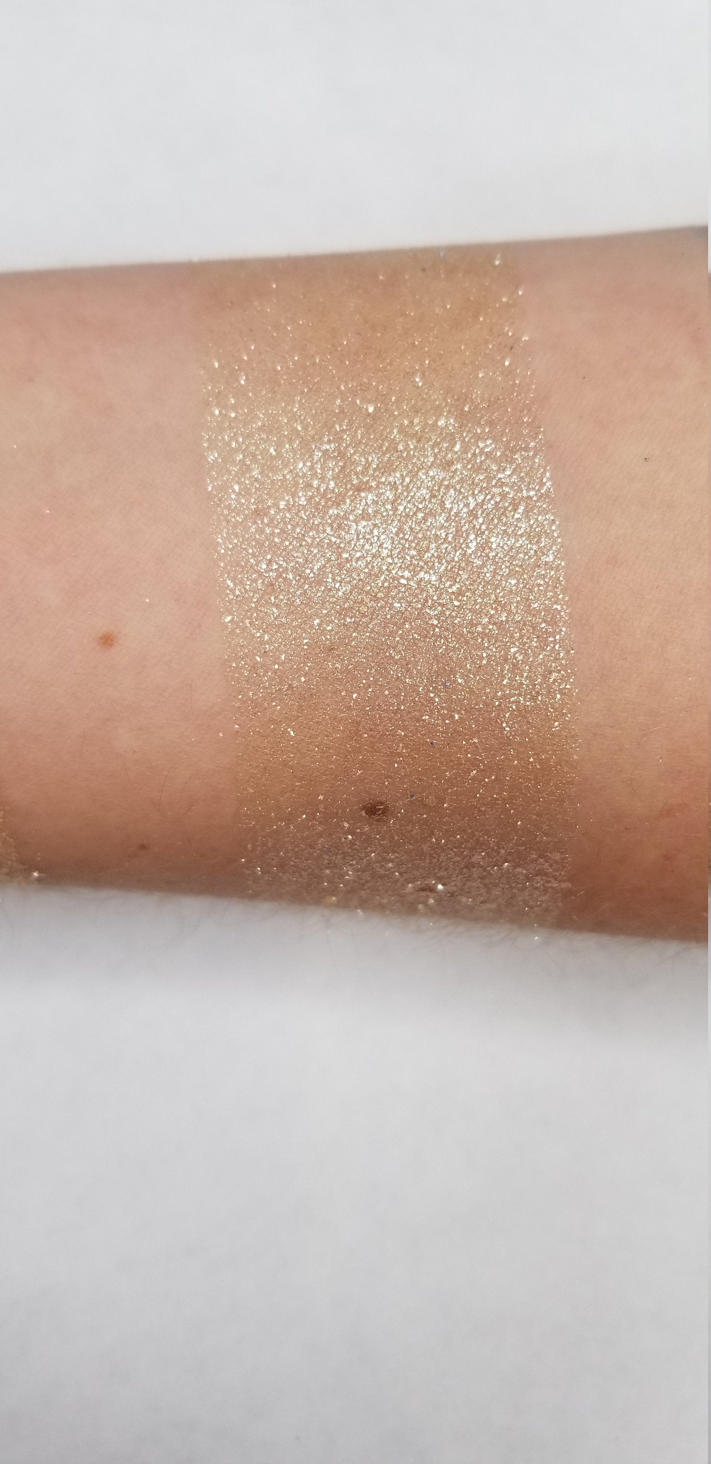 Gorgon is a beautiful gold with hints of green sparkly highlighter with plenty of pigment and glow to double as an eye shadow! These highlighters have the look and feel of a flakey type glitter, but without the plastic and much softer! Because of how sparkly these are, I recommend using your finger to apply however a brush will still work fine! Each pan is magnetic and comes in 36mm size. This is a pressed product.