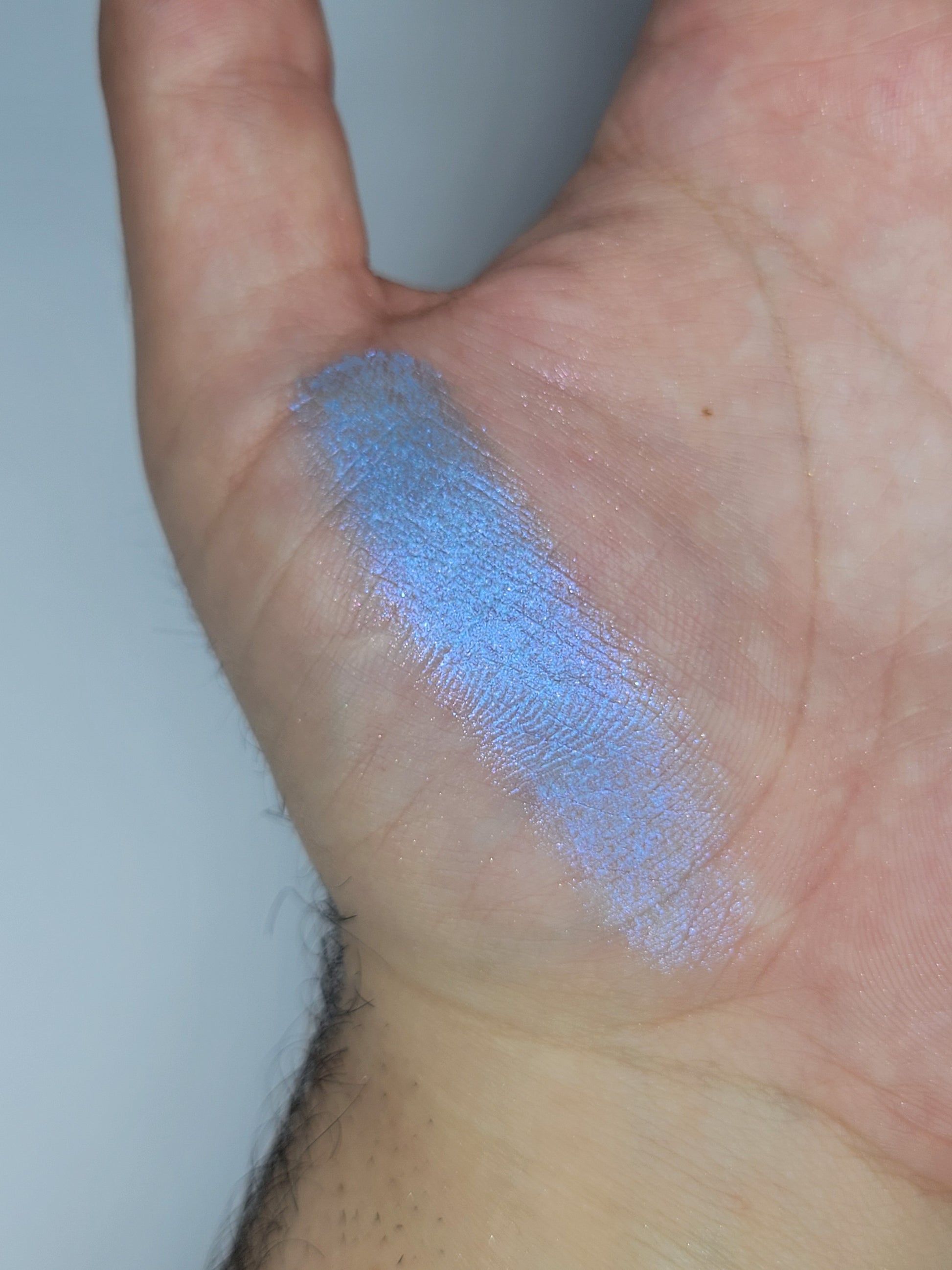Insane Amphibian is a blue shimmery eyeshadow. Smaller in particle size and very smooth and sparkly!
