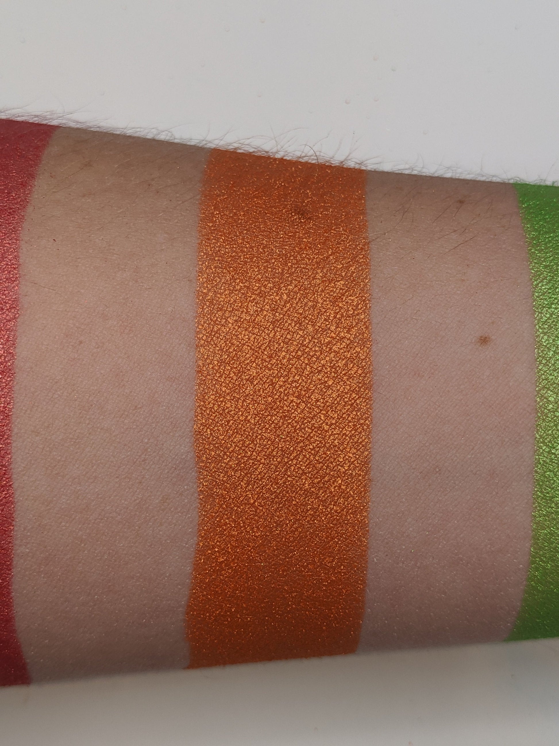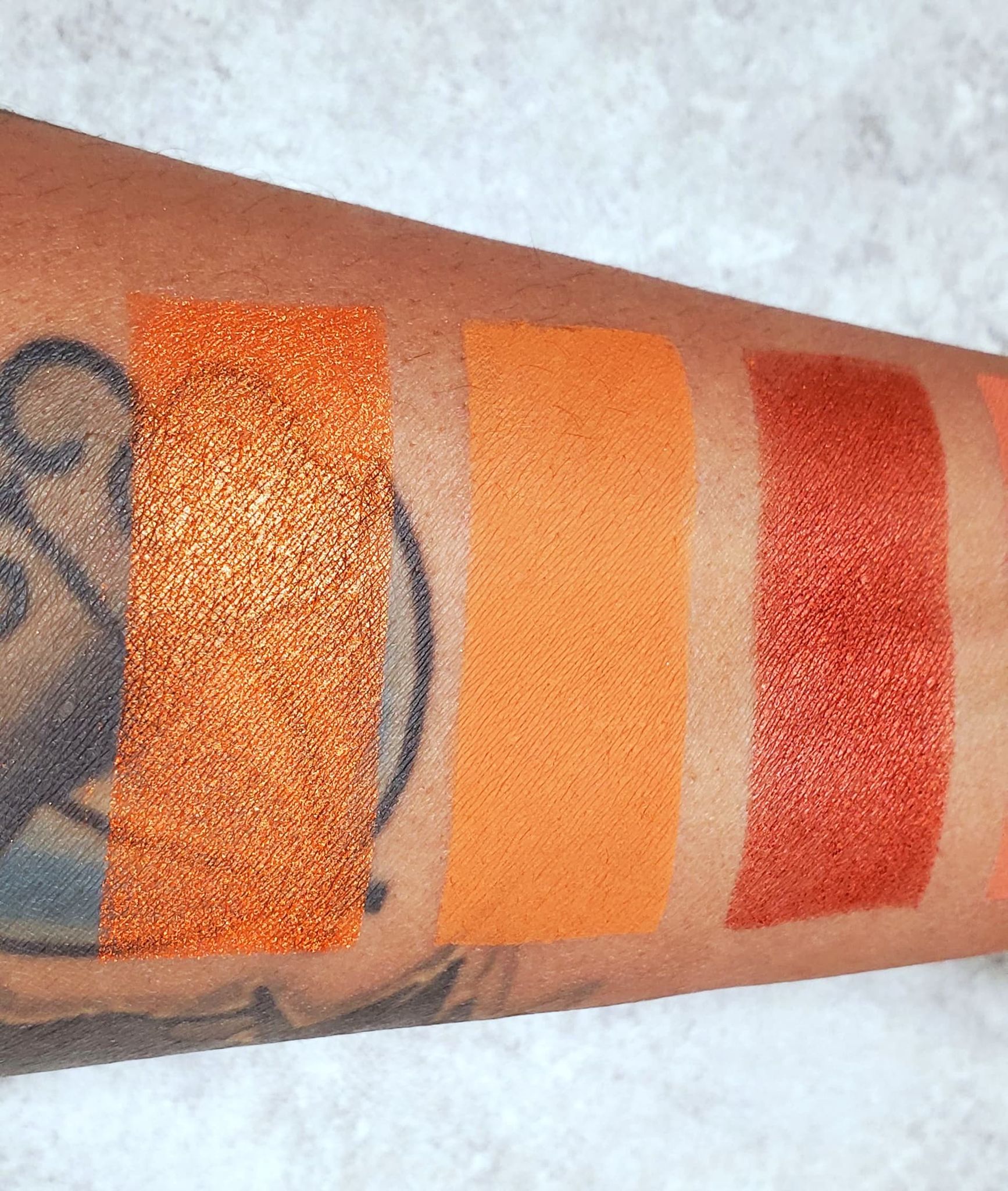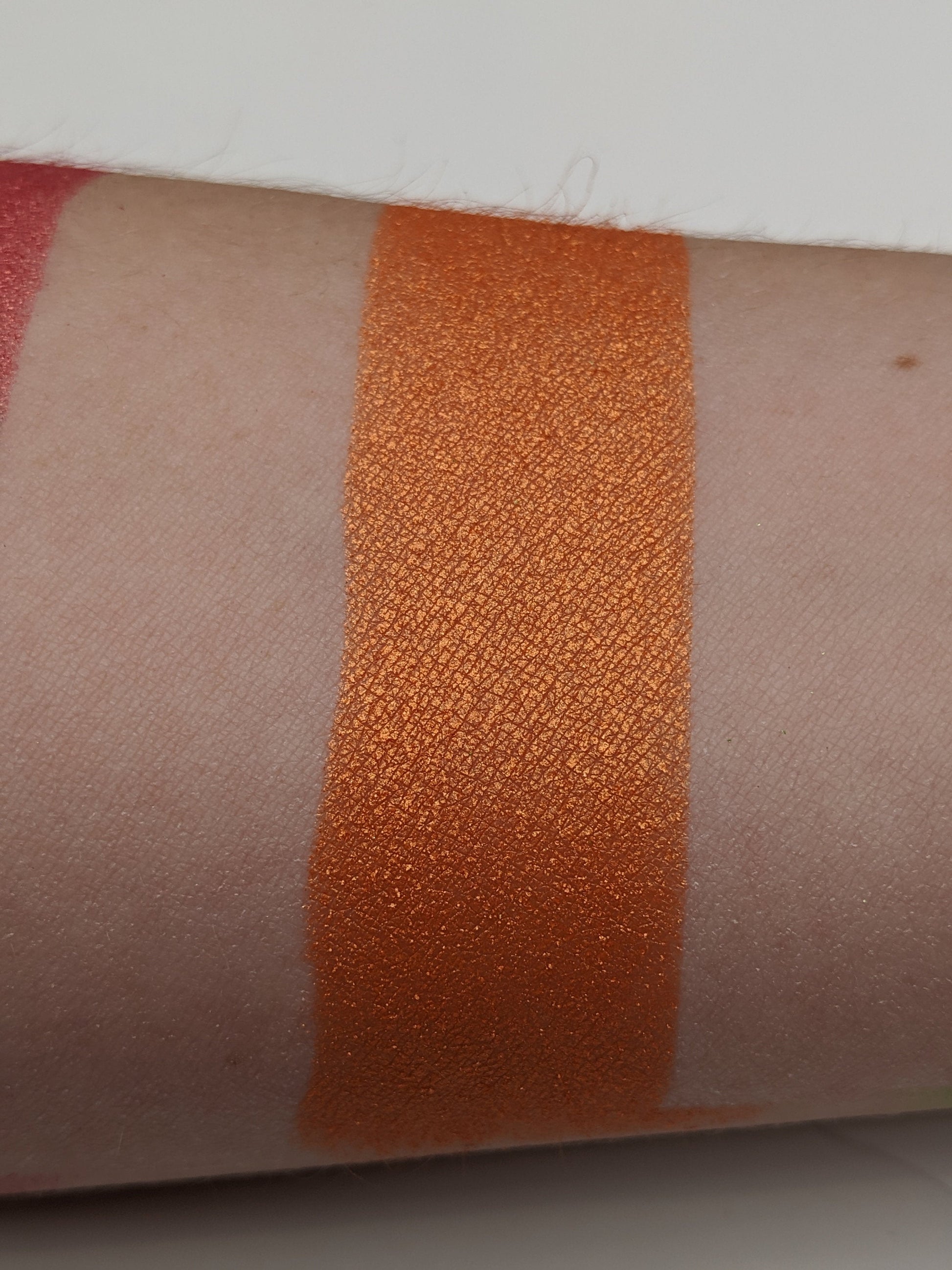 Mango is a bright and shimmer orange eyeshadow! Each eyeshadow pan is magnetic and comes in 26mm, the size of a quarter. This is a pressed product, making it easy to apply with your favorite brush or even your finger.