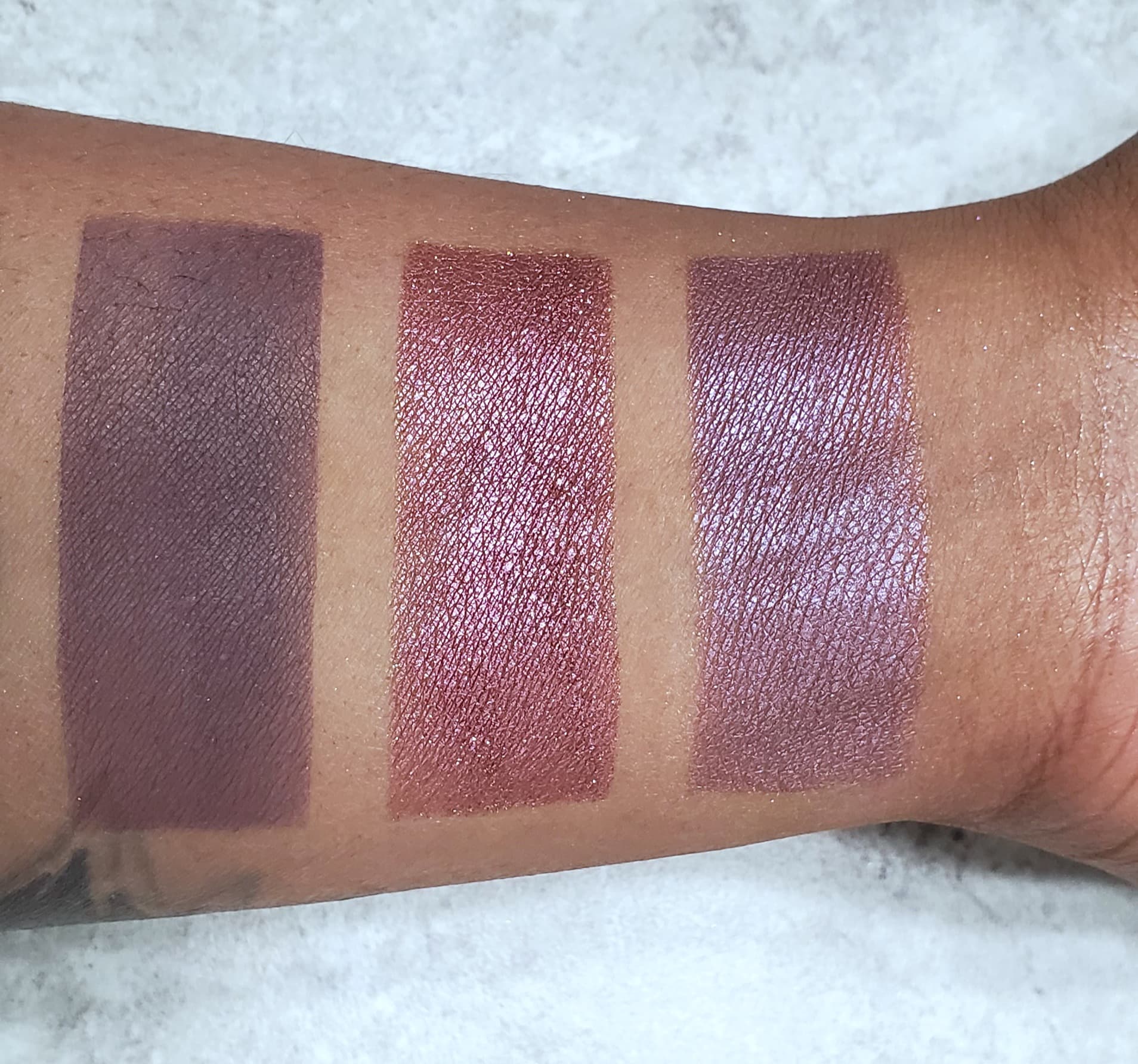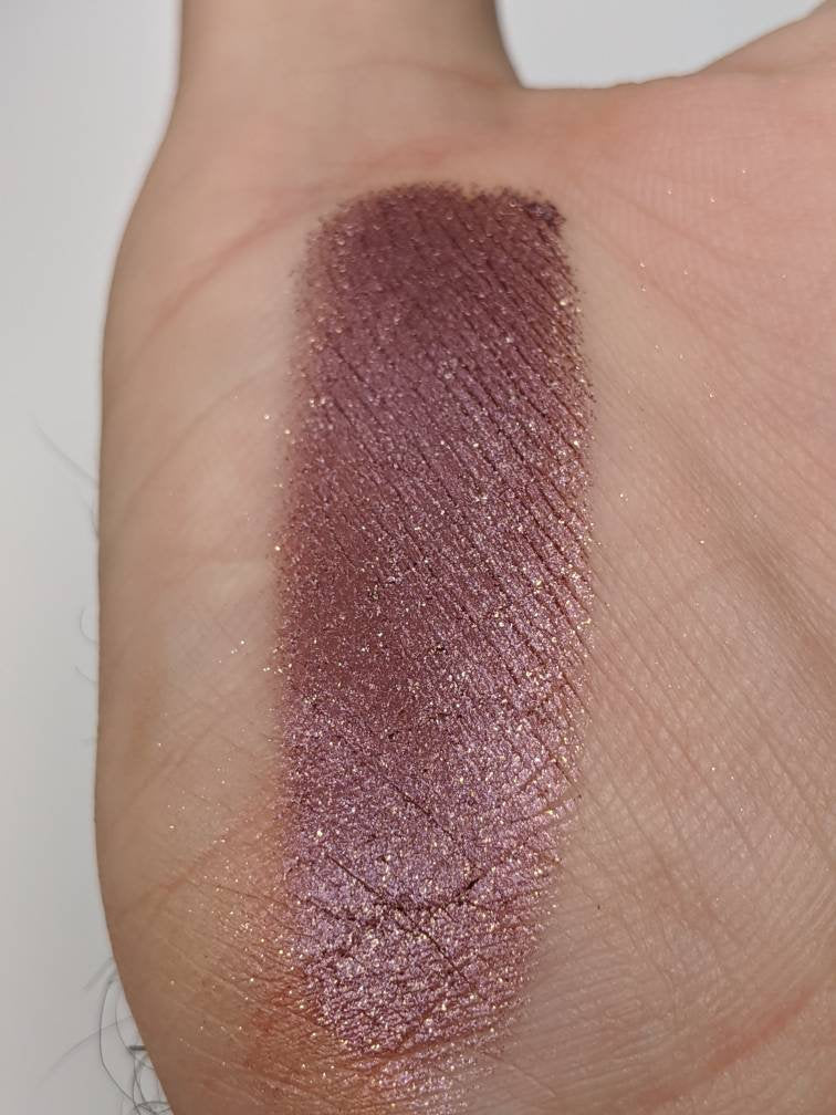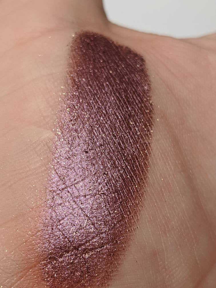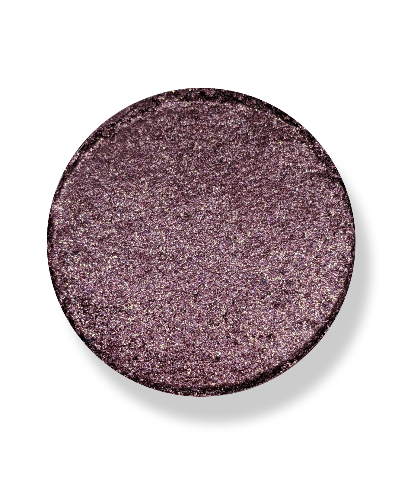 Matriarch is a vibrant purple eye shadow with deep red tones, littered with golden sparkles. In certain light I find that this color shifts to a more red color, however has a strong vibrant purple shine. A manifestation of dominance. Each eyeshadow pan is magnetic and comes in 26mm, the size of a quarter. This is a pressed product, making it easy to apply with your favorite brush or even your finger.