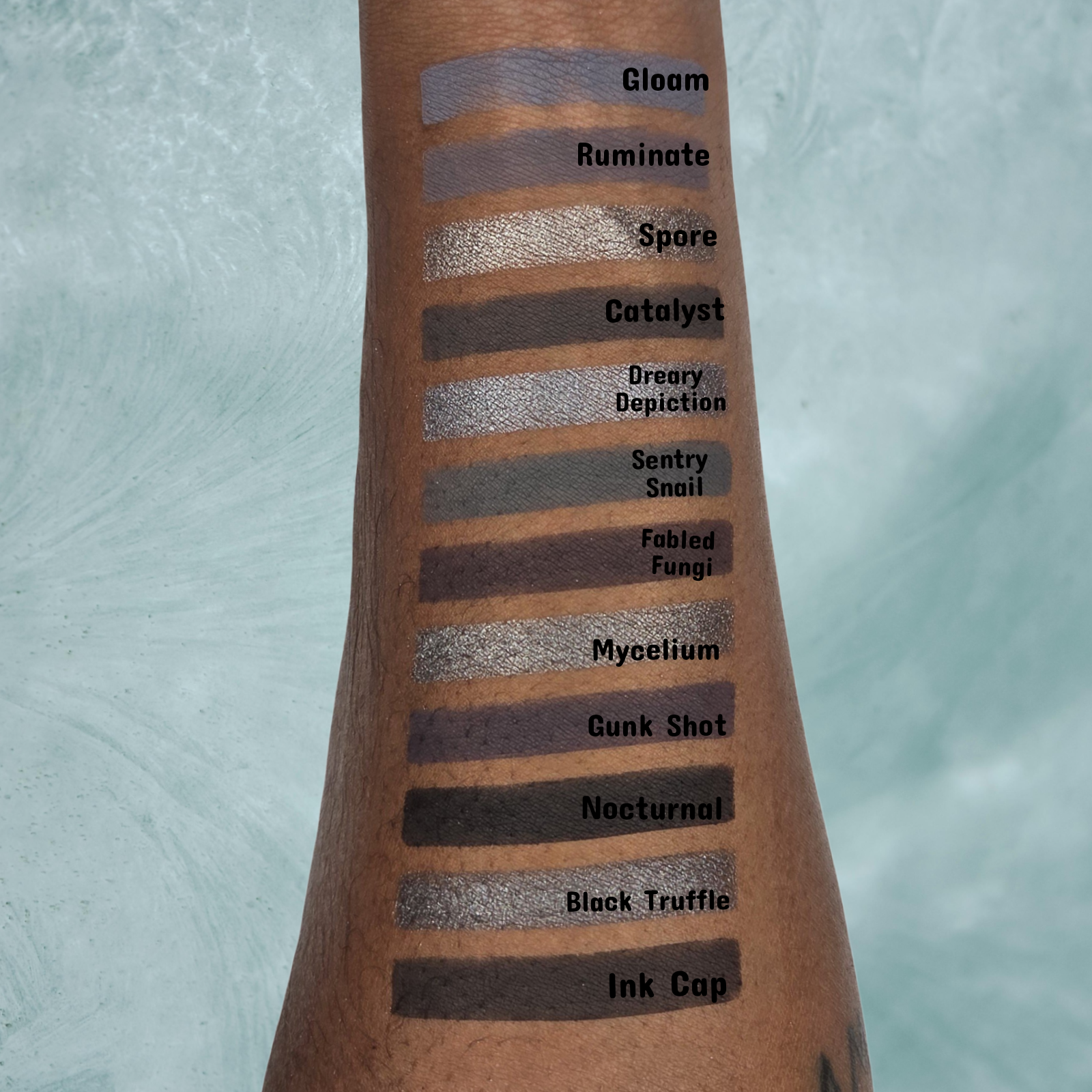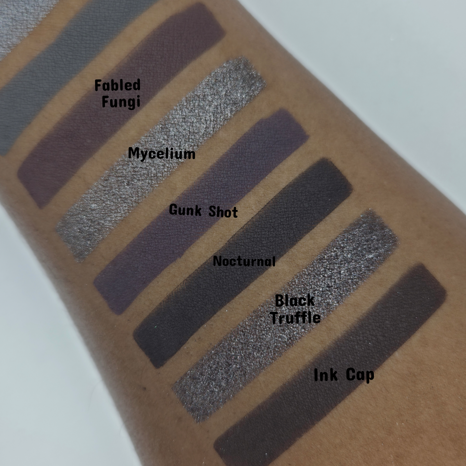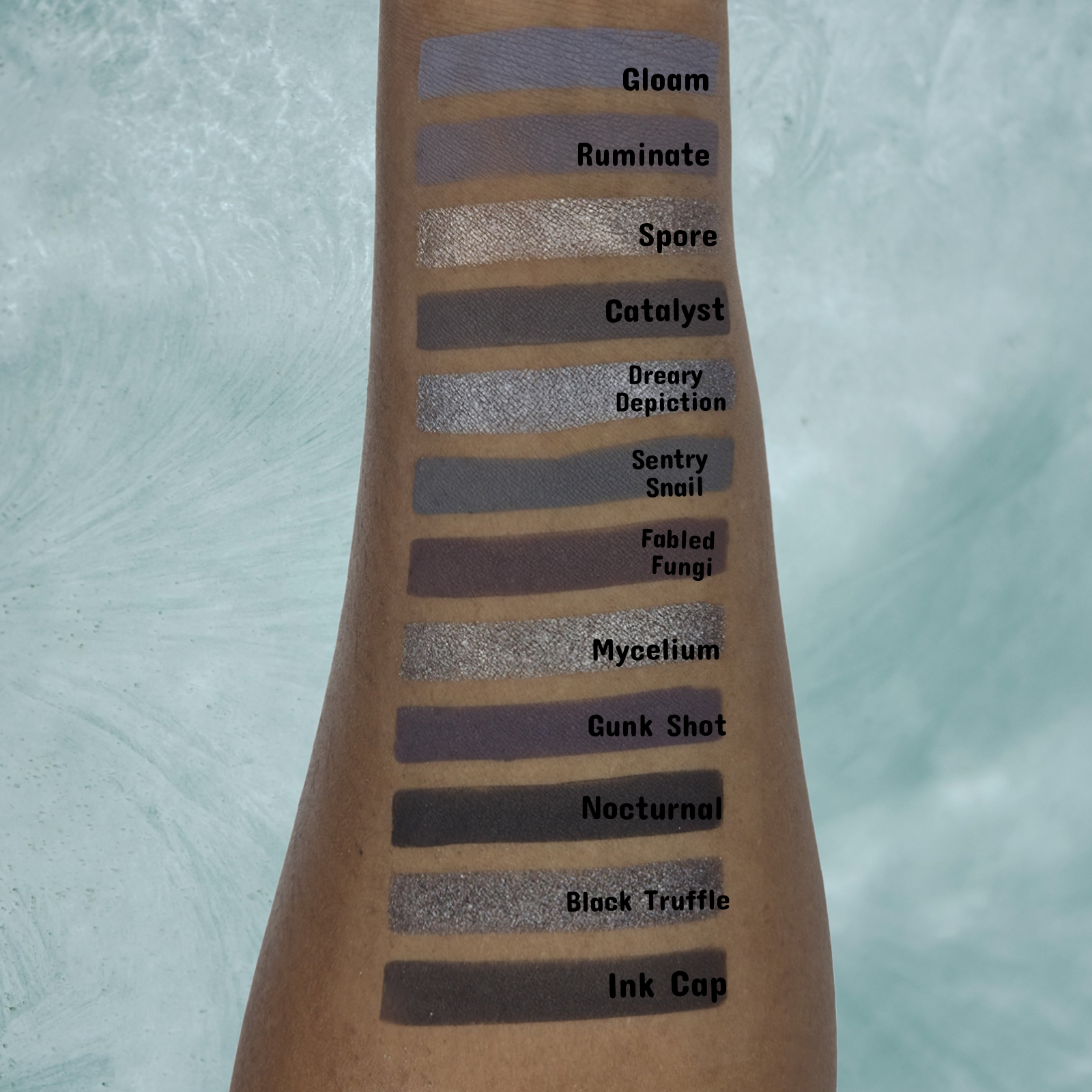 Matte Use Tips: My mattes are handmade and formulated to be soft with a little bit of kickup to help create a gorgeous blend. When applying, lightly tap your brush into the eyeshadow and pat in the eyeshadow around the eye, rather then brushing back and forth. A primer/concealer base is always recommended as this helps the eyeshadows lay down nicely, while also increasing wear time.
