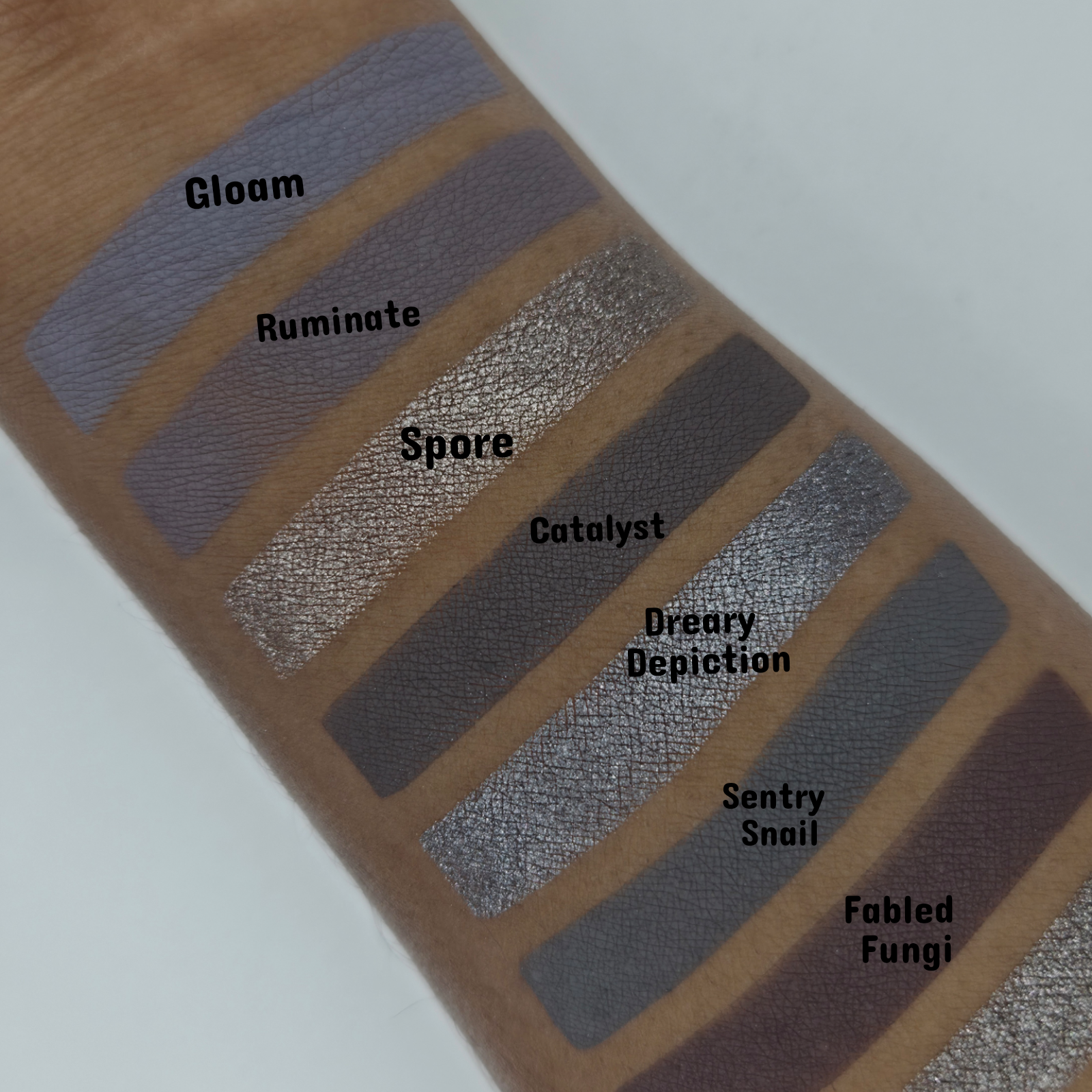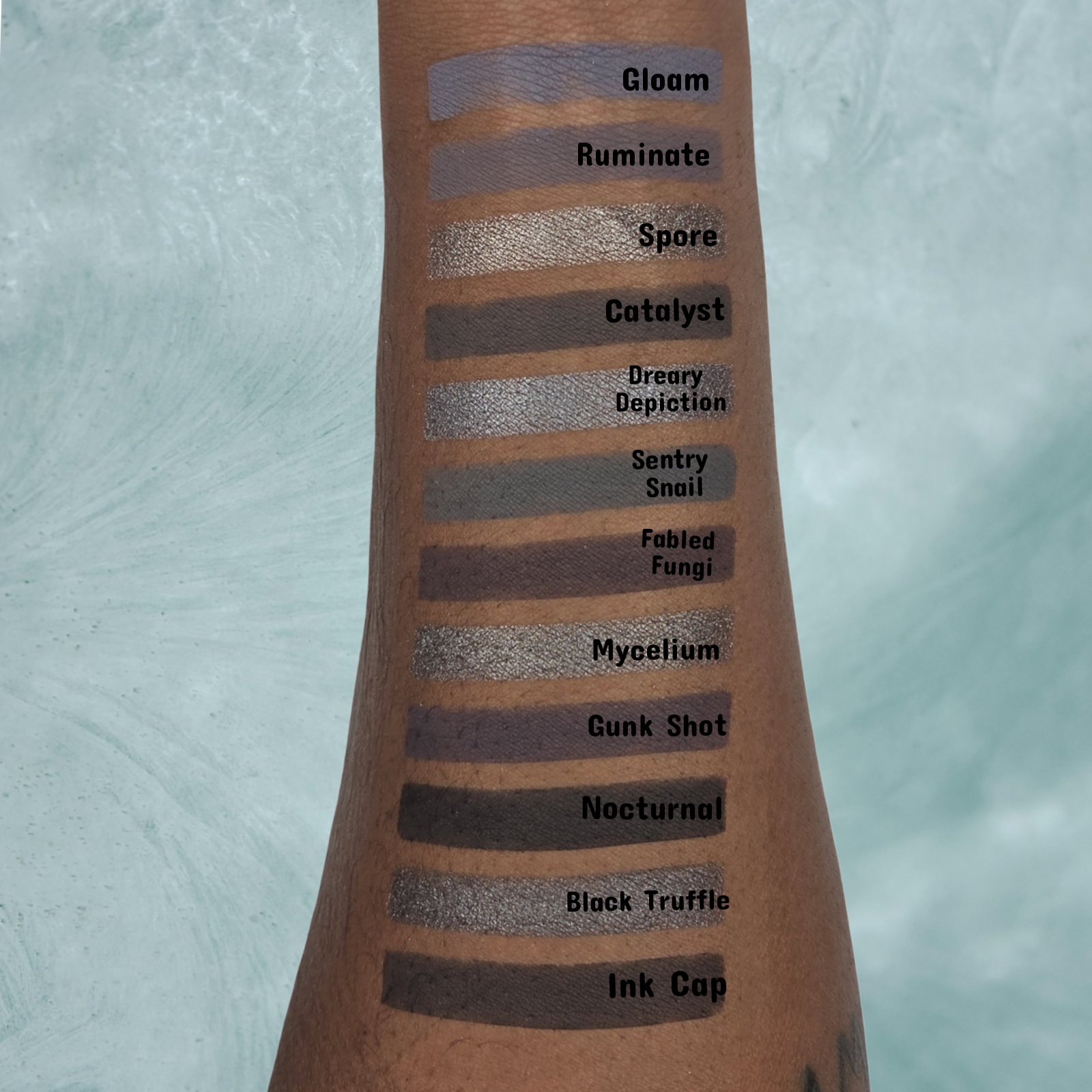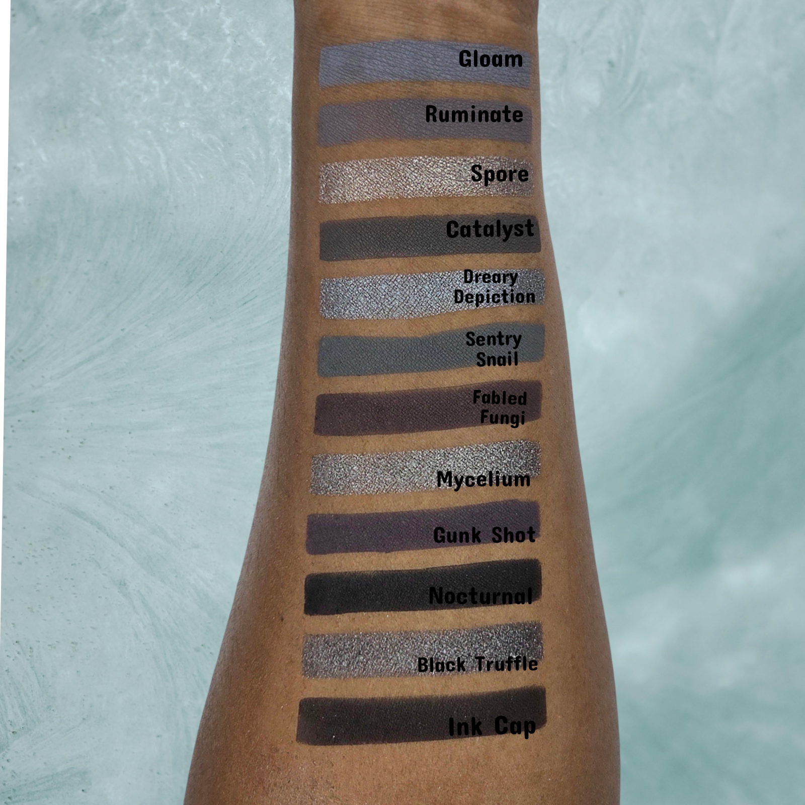 Matte Use Tips: My mattes are handmade and formulated to be soft with a little bit of kickup to help create a gorgeous blend. When applying, lightly tap your brush into the eyeshadow and pat in the eyeshadow around the eye, rather then brushing back and forth. A primer/concealer base is always recommended as this helps the eyeshadows lay down nicely, while also increasing wear time.