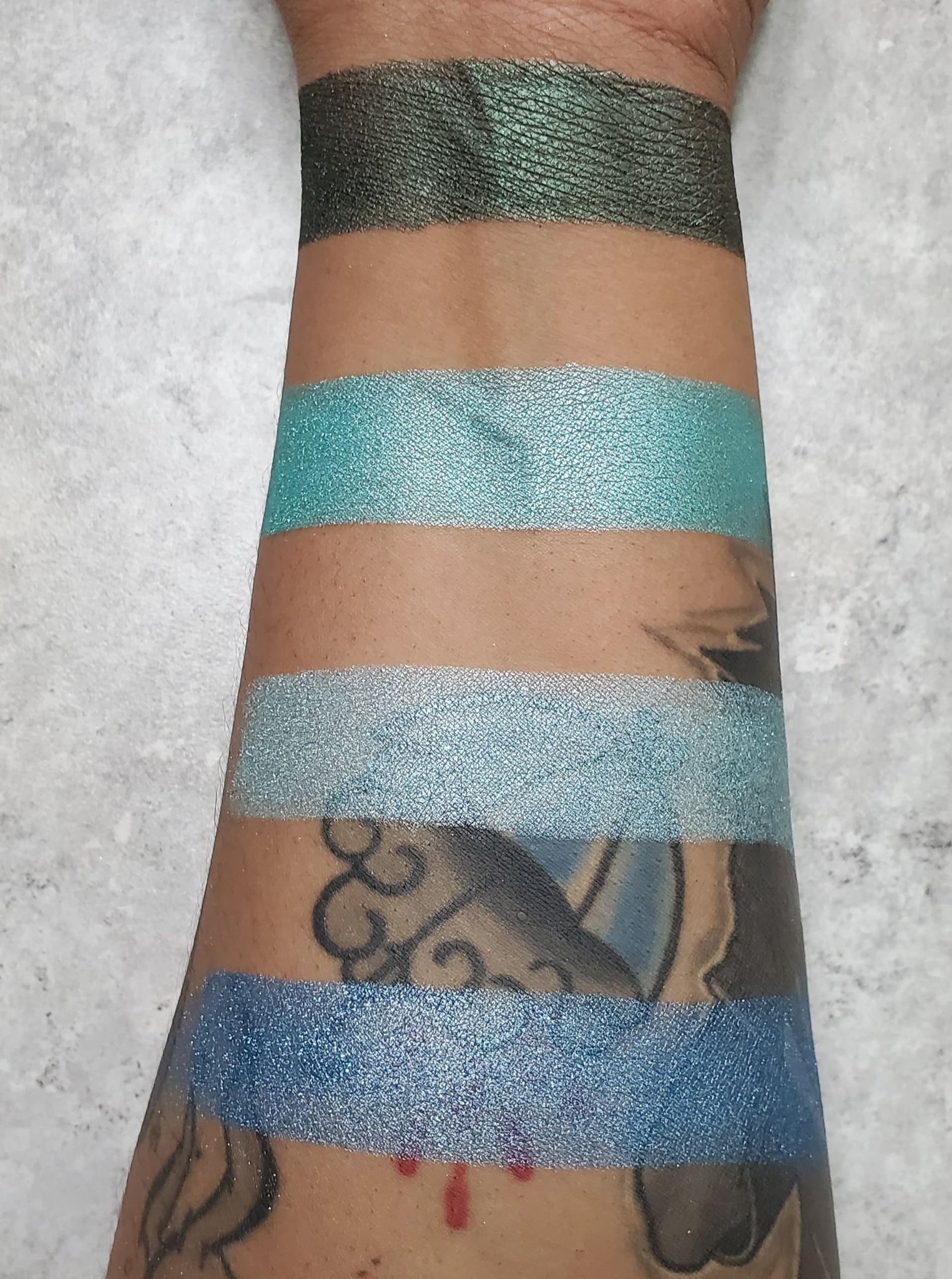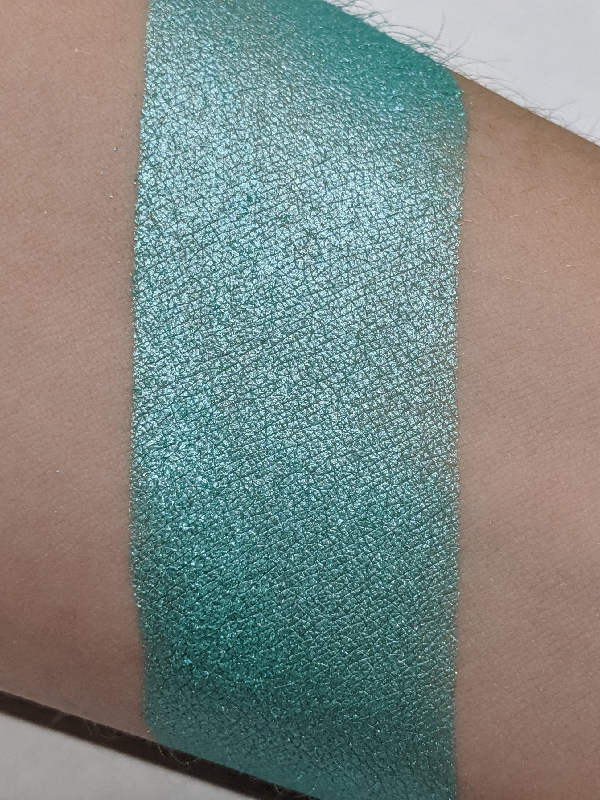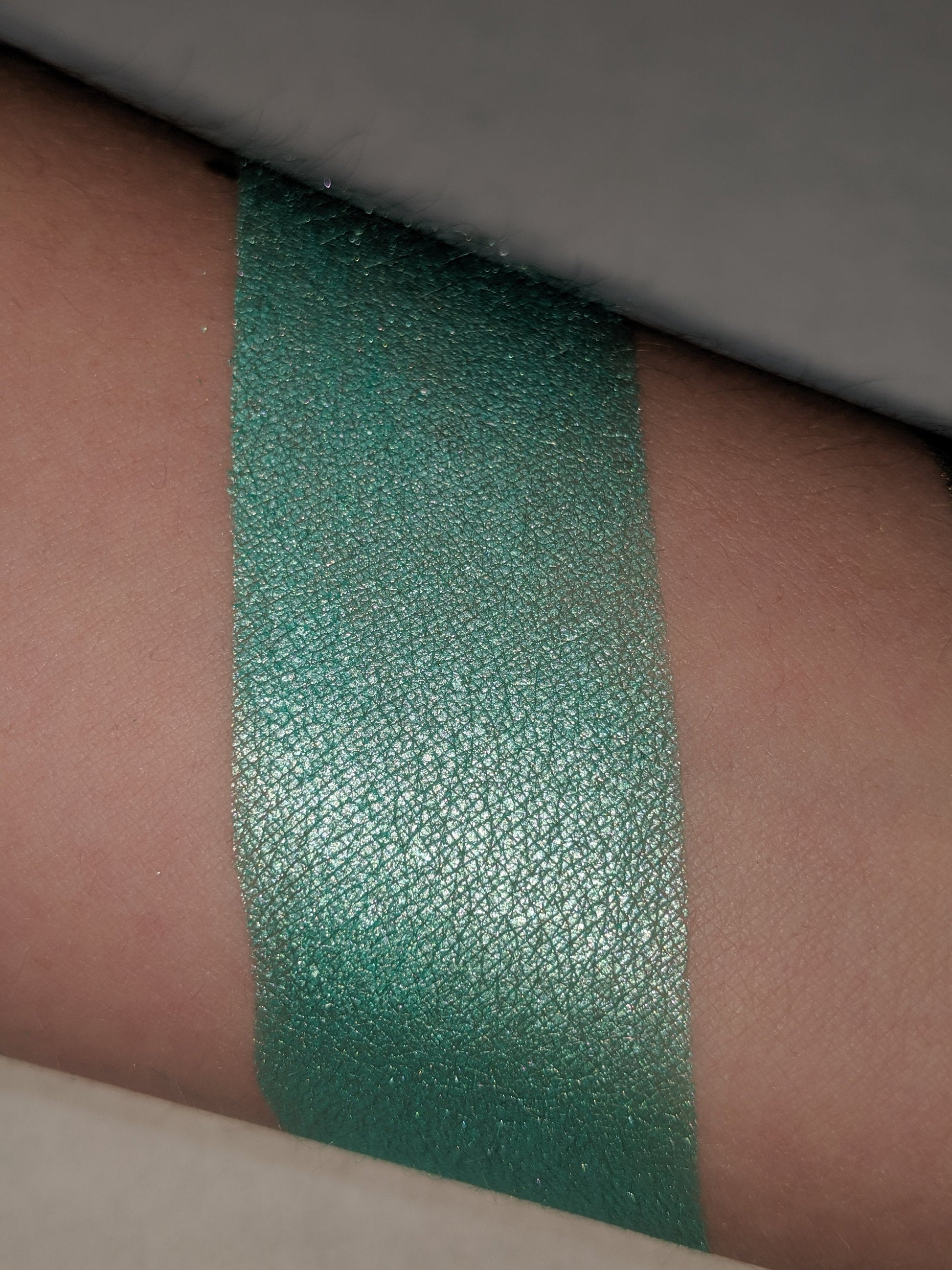 Morning Dew is a light green eye shadow with a silver reflection! Each eyeshadow pan is magnetic and comes in 26mm, the size of a quarter. This is a pressed product, making it easy to apply with your favorite brush or even your finger.