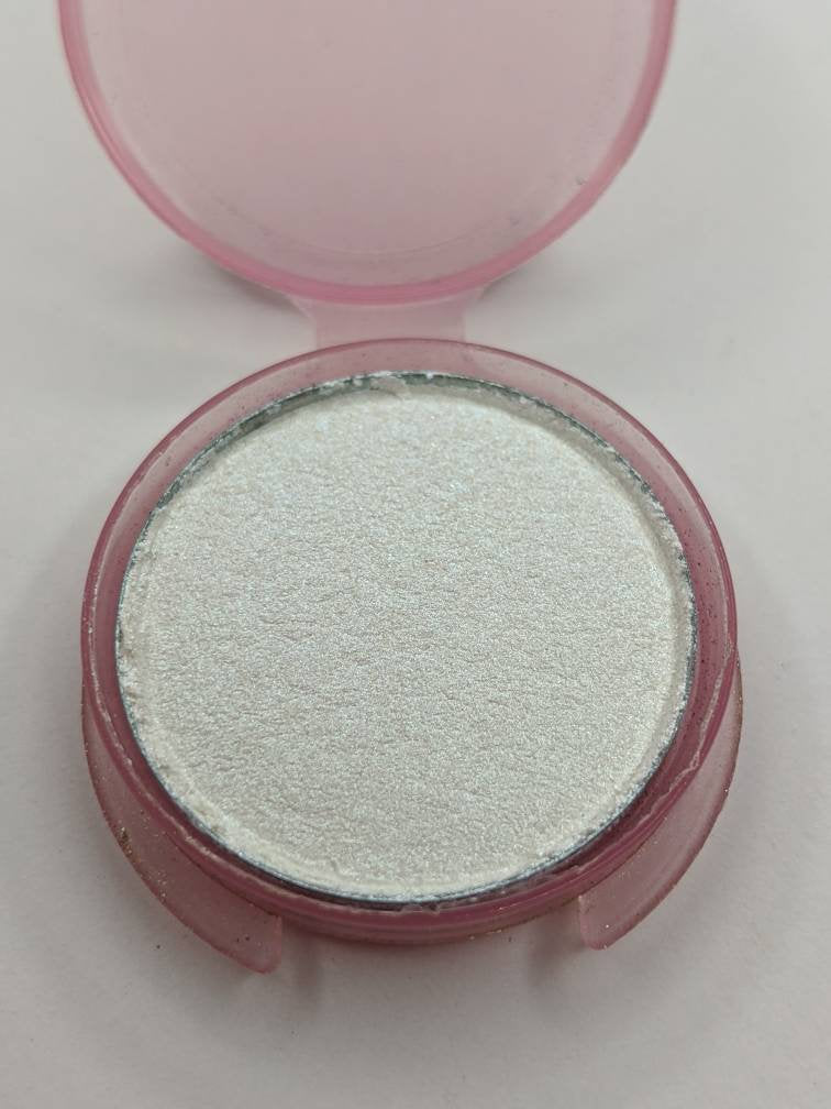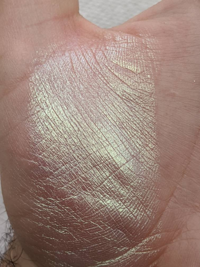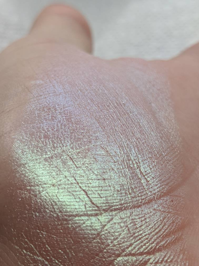 Naga is a transparent multichrome that appears white in the pan but bursts into colors once you swipe it onto your skin. That makes this a perfect highlight for the face and eyes, or even use it ontop of other colors to add some dimension! This shade shifts from Gold Green, Silver Green, and then blue. Each pan is magnetic and comes in 26mm size. This is a pressed product, making it easy to apply with your favorite brush or even your finger.