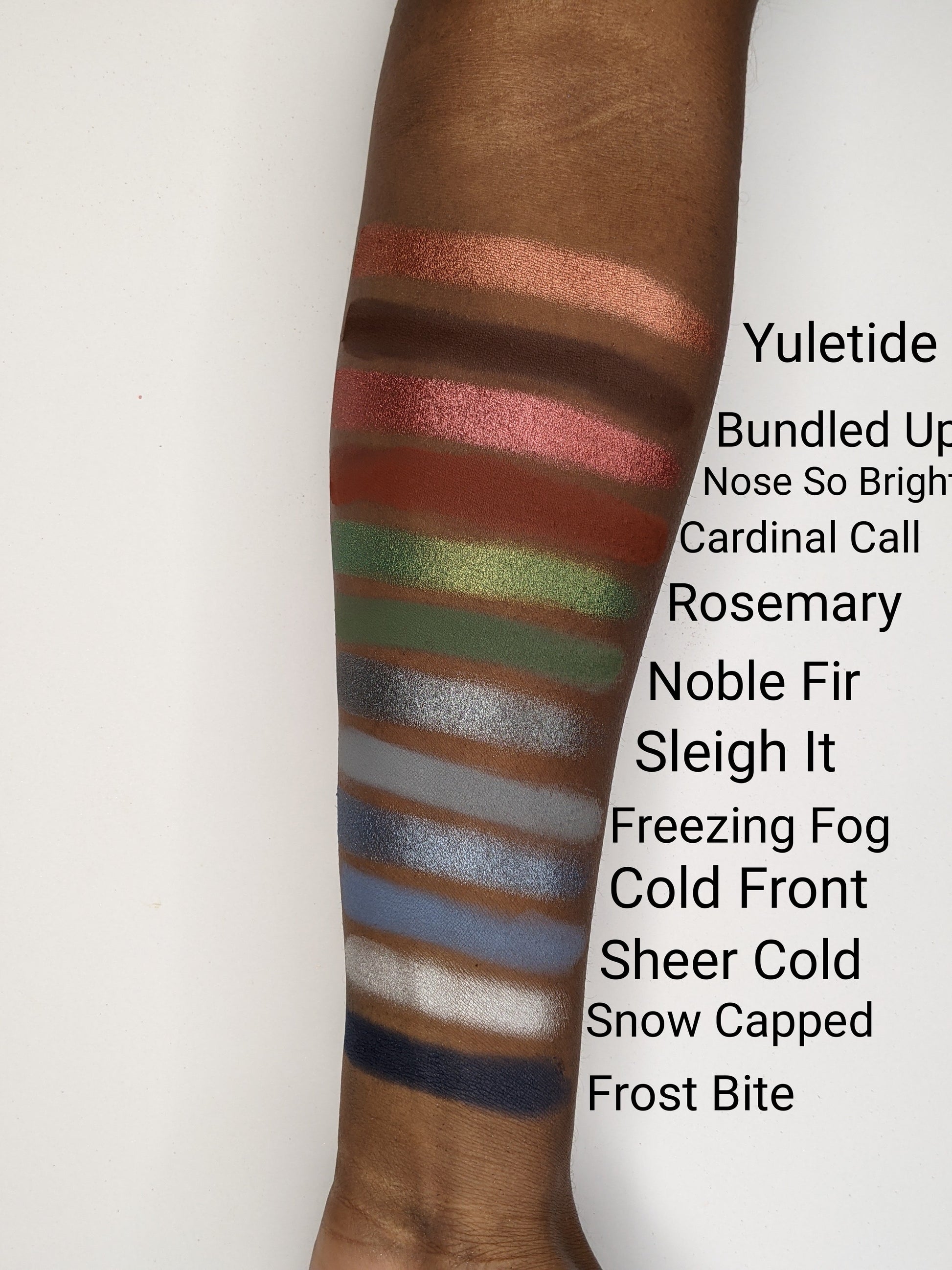 Noble Fir is a green matte eyeshadow with greyish undertones. Also available in the Snow Spell palette! Very soft and blend-able for an easy application! Use your favorite primer to make these mattes POP! Each eyeshadow pan is magnetic and comes in 26mm, the size of a quarter. This is a pressed eyeshadow, making it easy to apply with your favorite brush or even your finger. My mattes are formulated to have a bit of kickup but are very pigmented, a little goes a long way!