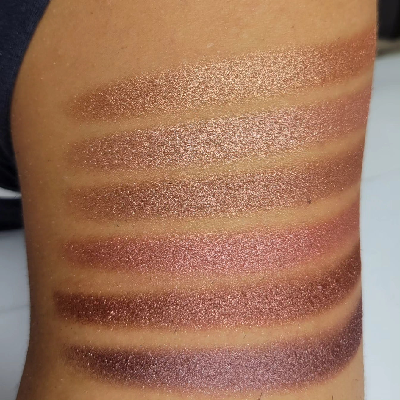Ingredients: Mica, Titanium Dioxide, Tin Oxide, Iron oxide, Aluminum Powder, Silica, Calcium Carbonate, Zinc Stearate, Kaolin Clay, Silicon Dioxide, Allantoin, Carnauba Wax, Isopropyl Myristate, Dimethicone, Dimethicone Copolymer, Boron Nitride, Magnesium Myristate.