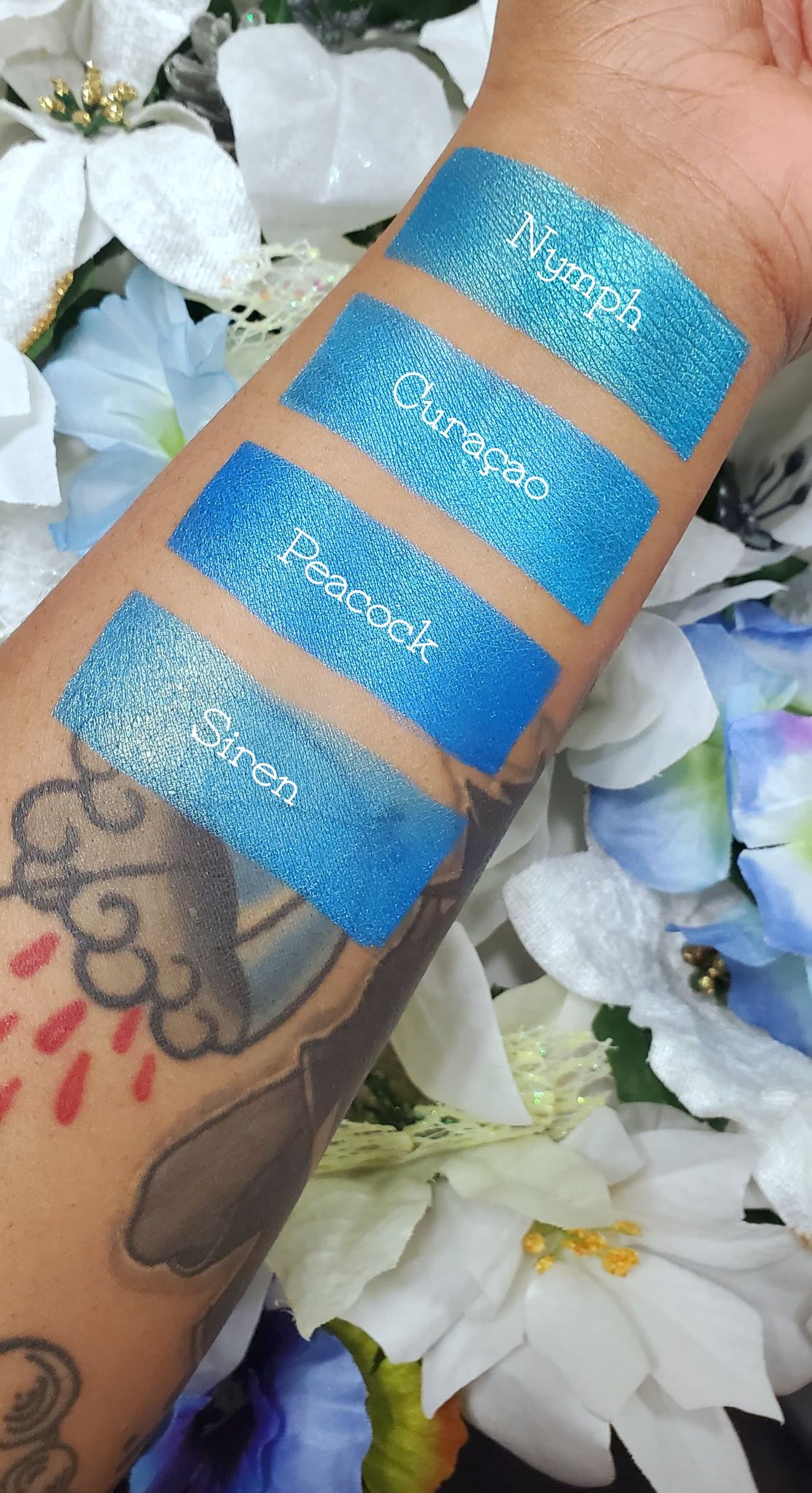Peacock is a vibrant and bold blue eyeshadow! If you are a fan of blue eye shadow like myself, you will LOVE this. Each eyeshadow pan is magnetic and comes in 26mm, the size of a quarter. This is a pressed product, making it easy to apply with your favorite brush or even your finger.