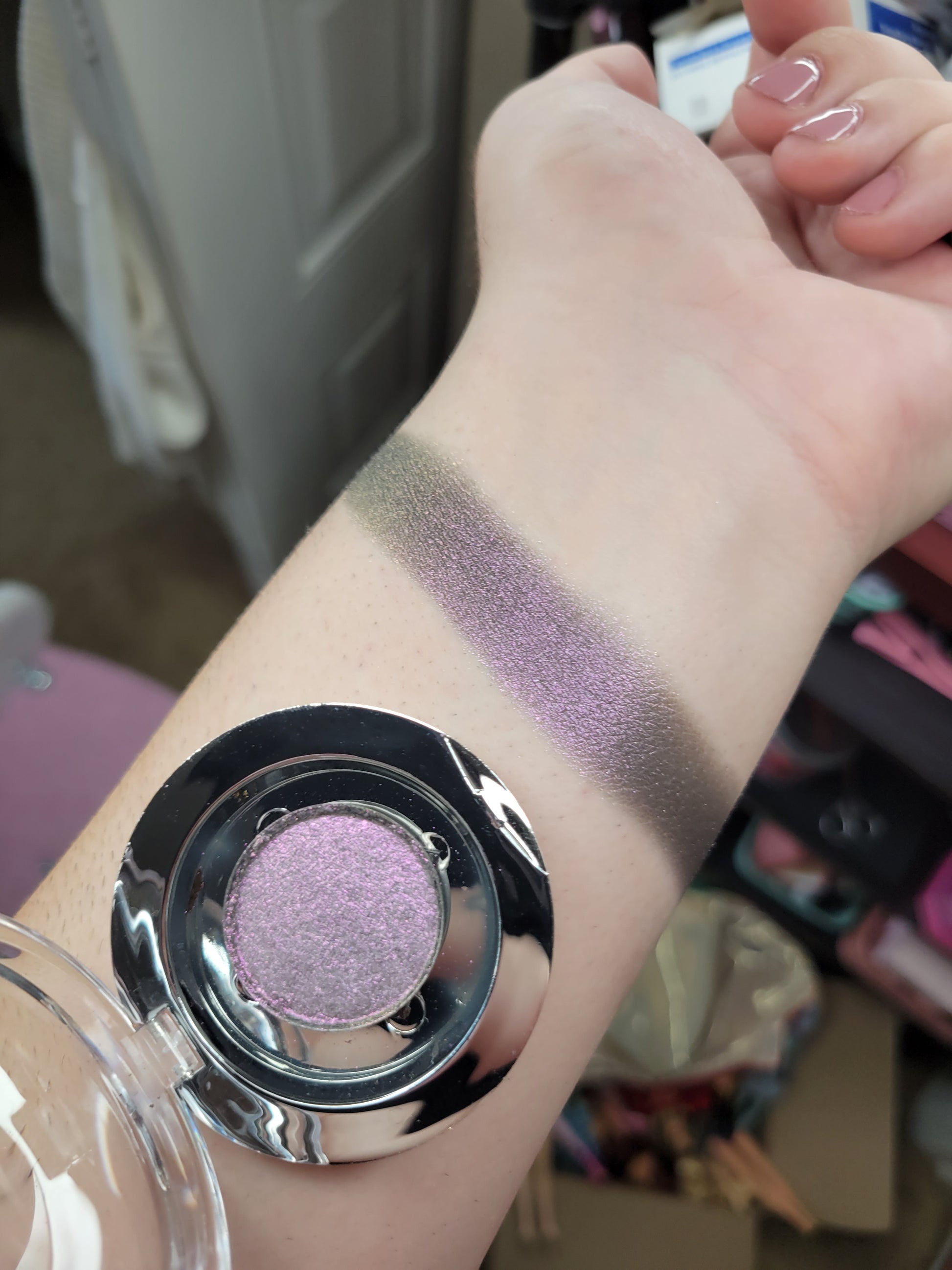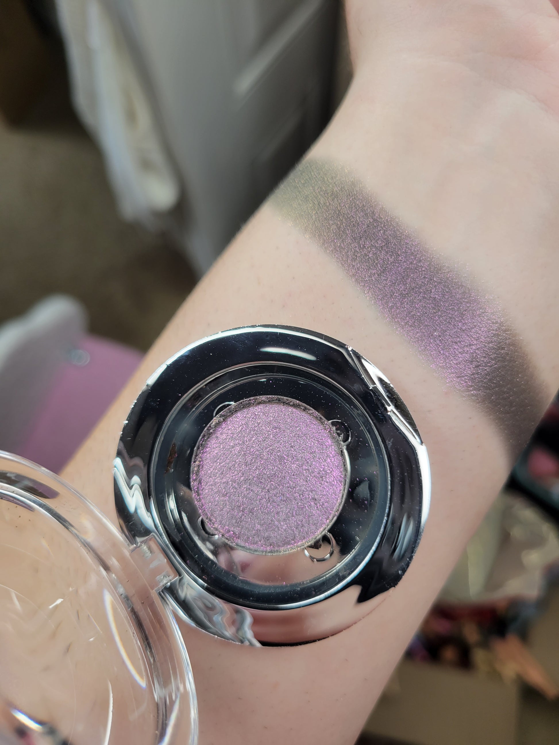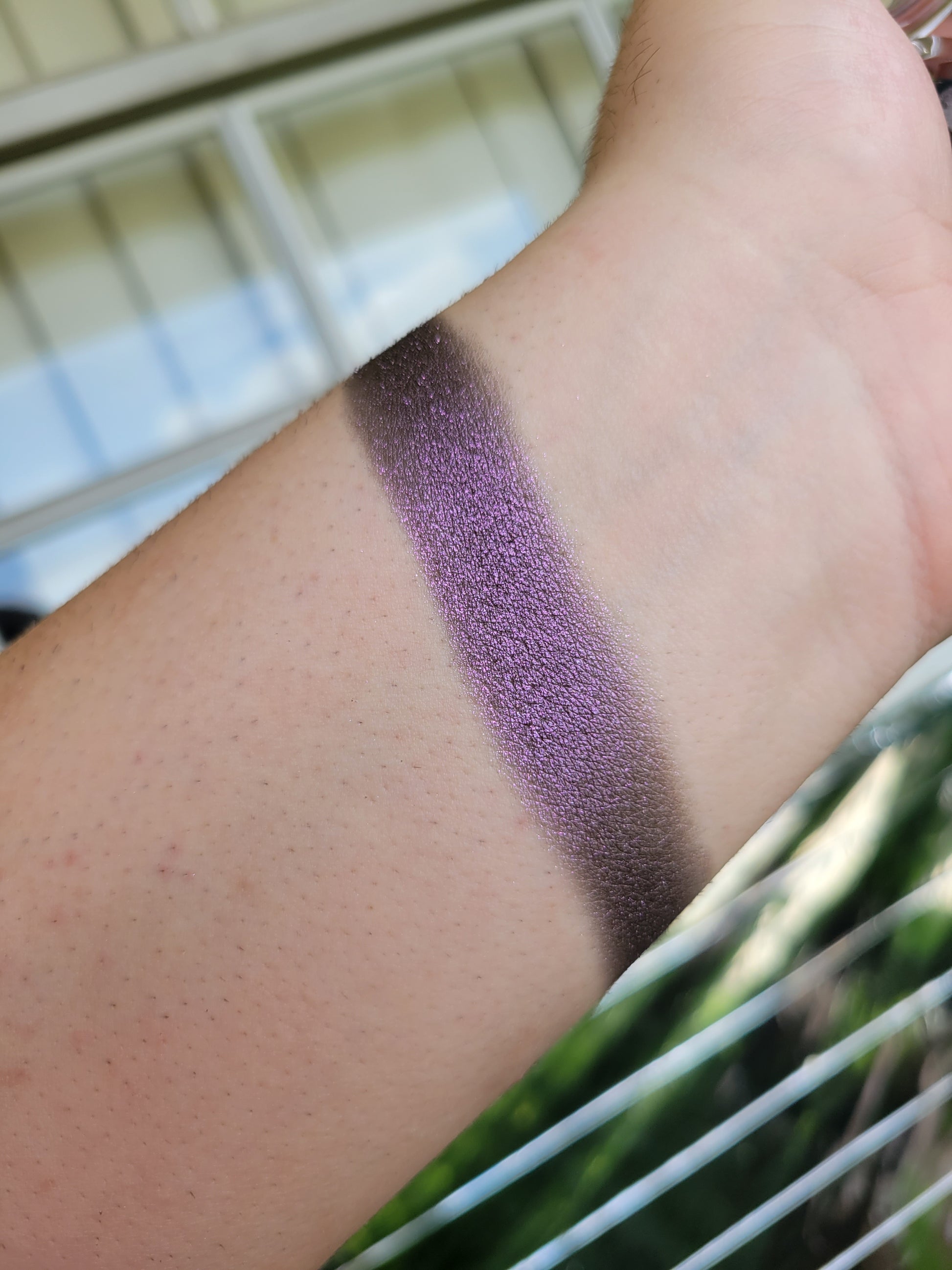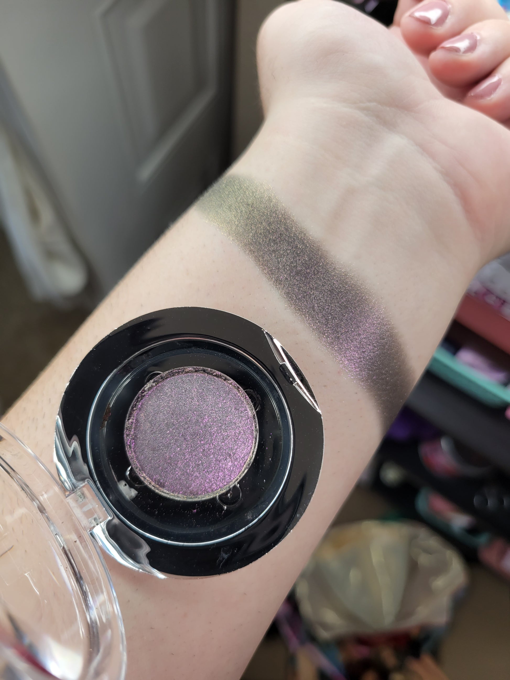 Penitent is a sparkly multichrome with a blackened base that shifts from a Red, Silvery grey to a gold green. Each pan is magnetic and comes in 26mm size. This is a pressed product, making it easy to apply with your favorite brush or even your finger.