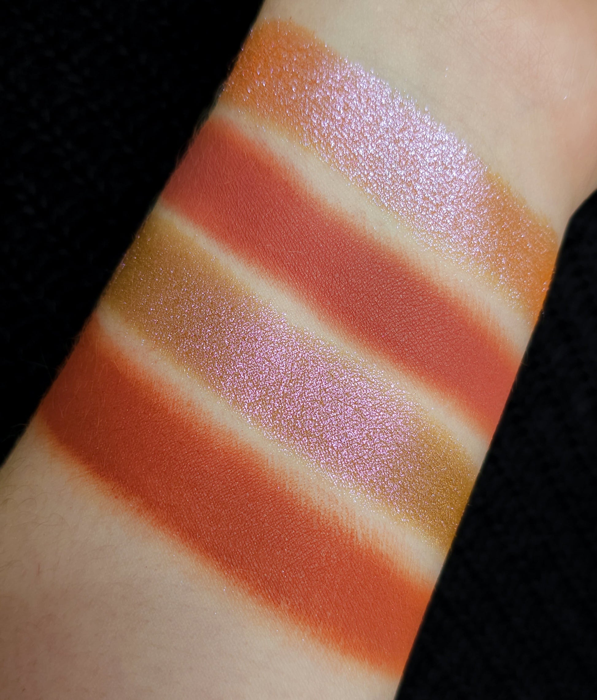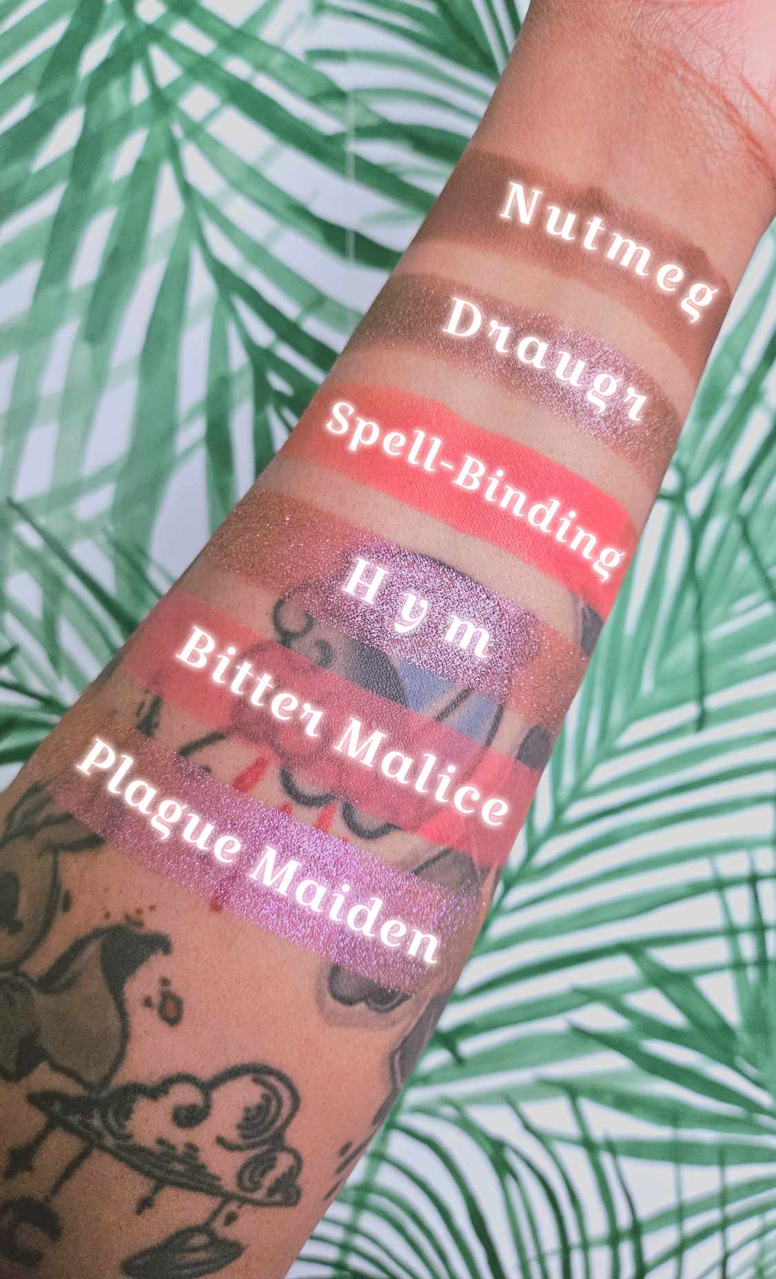 Mattes: My mattes are handmade and formulated to be soft with a little bit of kickup to help create a gorgeous blend. When applying, lightly tap your brush into the eyeshadow and pat in the eyeshadow around the eye, rather then brushing back and forth. A primer/concealer base is always recommended as this helps the eyeshadows lay down nicely, while also increasing wear time.