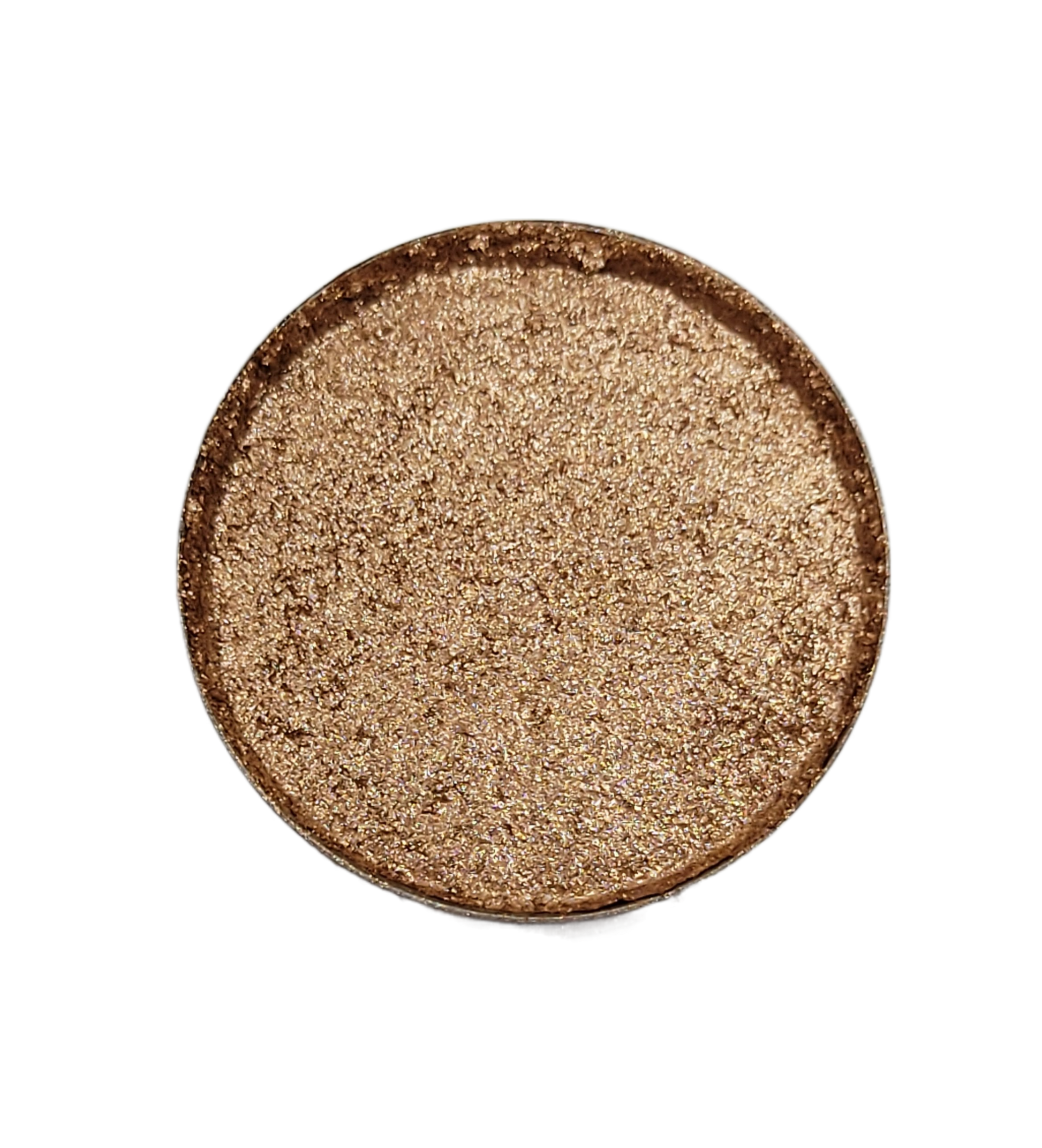 Siesta is a shimmery champagne rose gold eyeshadow. Each eyeshadow pan is magnetic and comes in 26mm, the size of a quarter. This is a pressed eyeshadow, making it easy to apply with your favorite brush or even your finger.