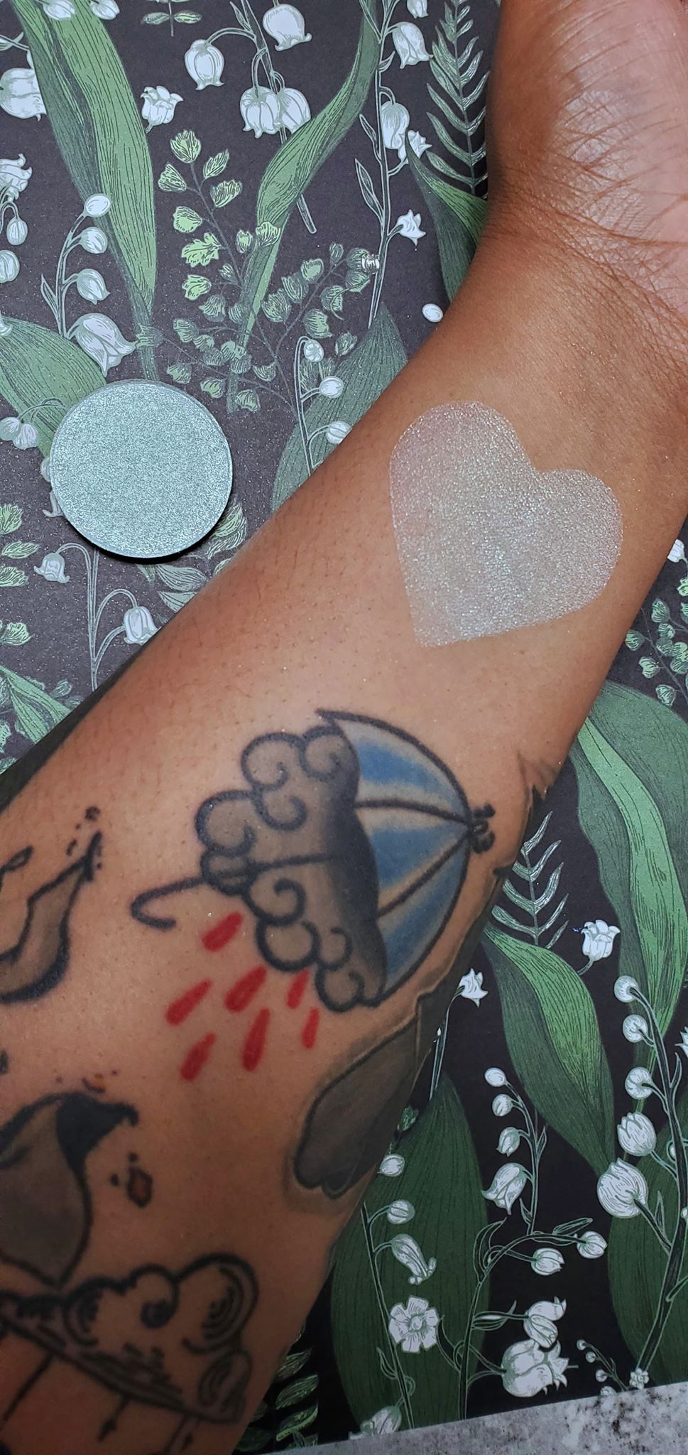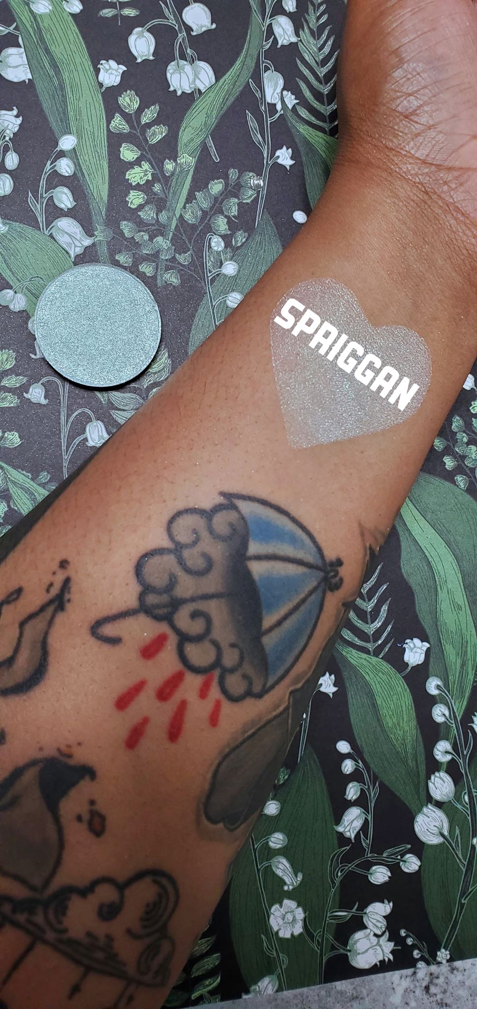 Spriggan is a vibrant green highlighter that gives off a strong gold and green sparkle throughout, making it look like it came straight from the faeries garden. Each pan is magnetic and comes in 36mm size. This is a pressed product, making it easy to apply with your favorite brush or even your finger.