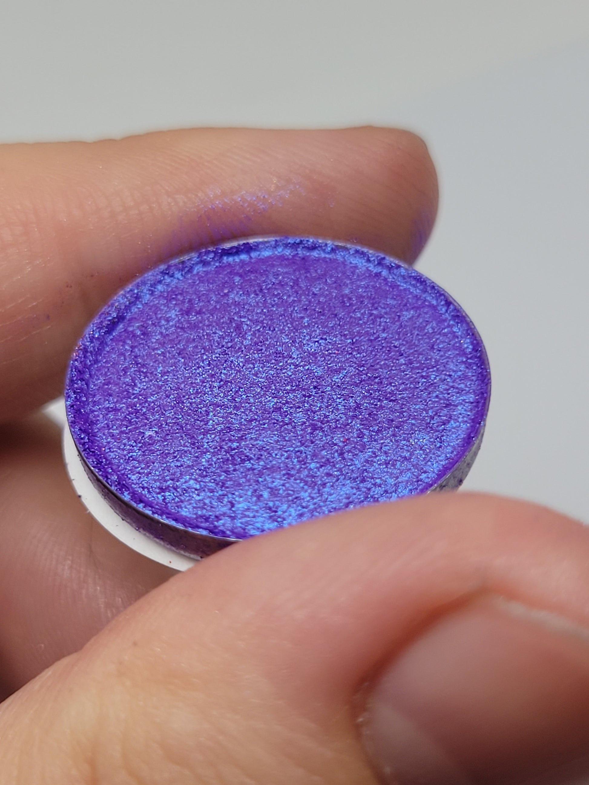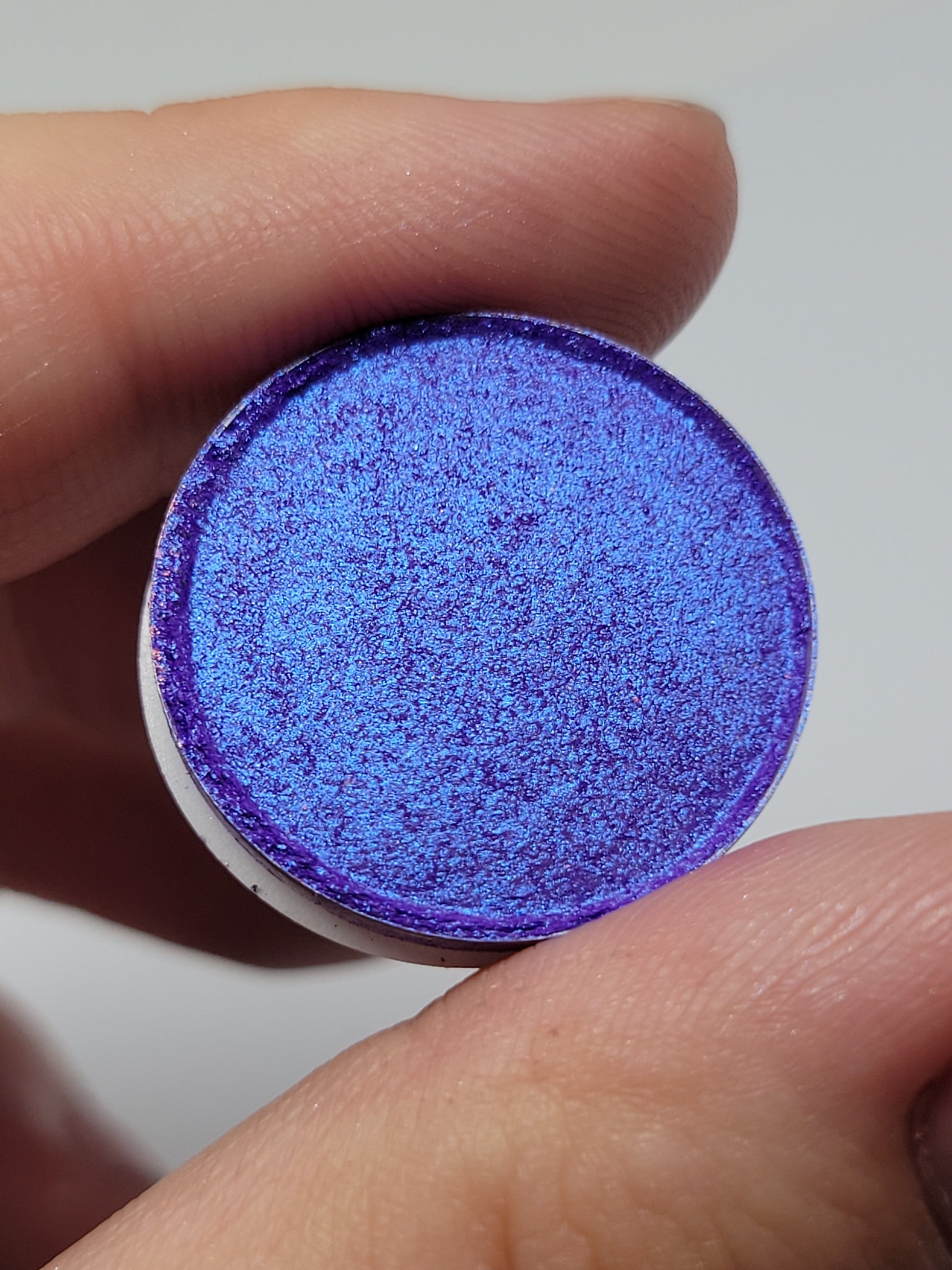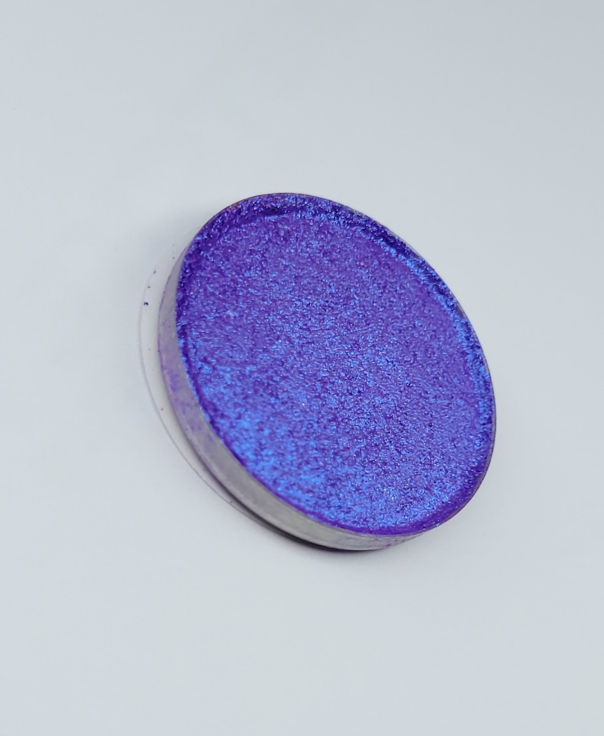 Starbloom is a gorgeous light blue duochrome with a lilac shift.. Each eyeshadow pan is magnetic and comes in 26mm, the size of a quarter. This is a pressed eyeshadow, making it easy to apply with your favorite brush or even your finger.