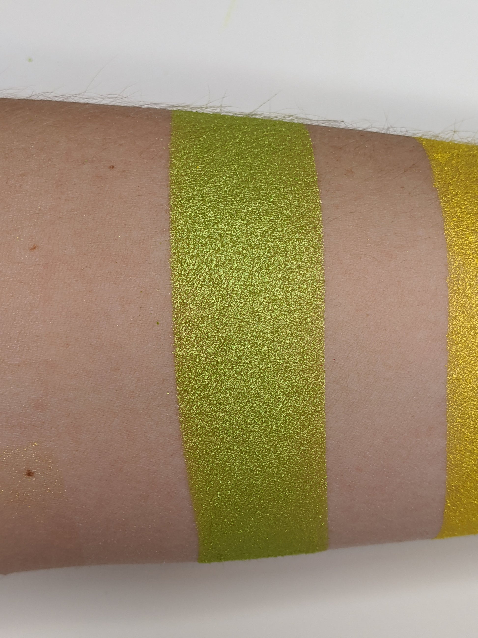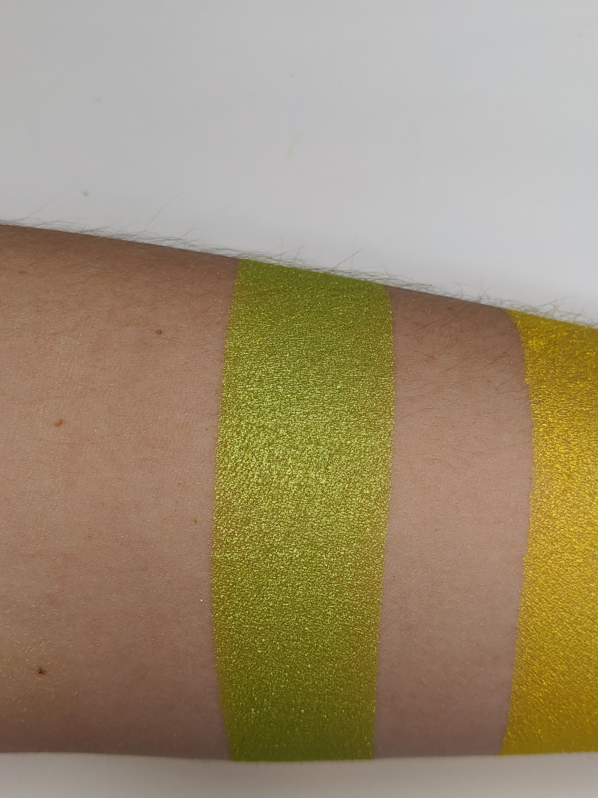 Sweet N Sour is a vibrant shimmer yellow toned green eyeshadow! Each eyeshadow pan is magnetic and comes in 26mm, the size of a quarter. This is a pressed product, making it easy to apply with your favorite brush or even your finger.