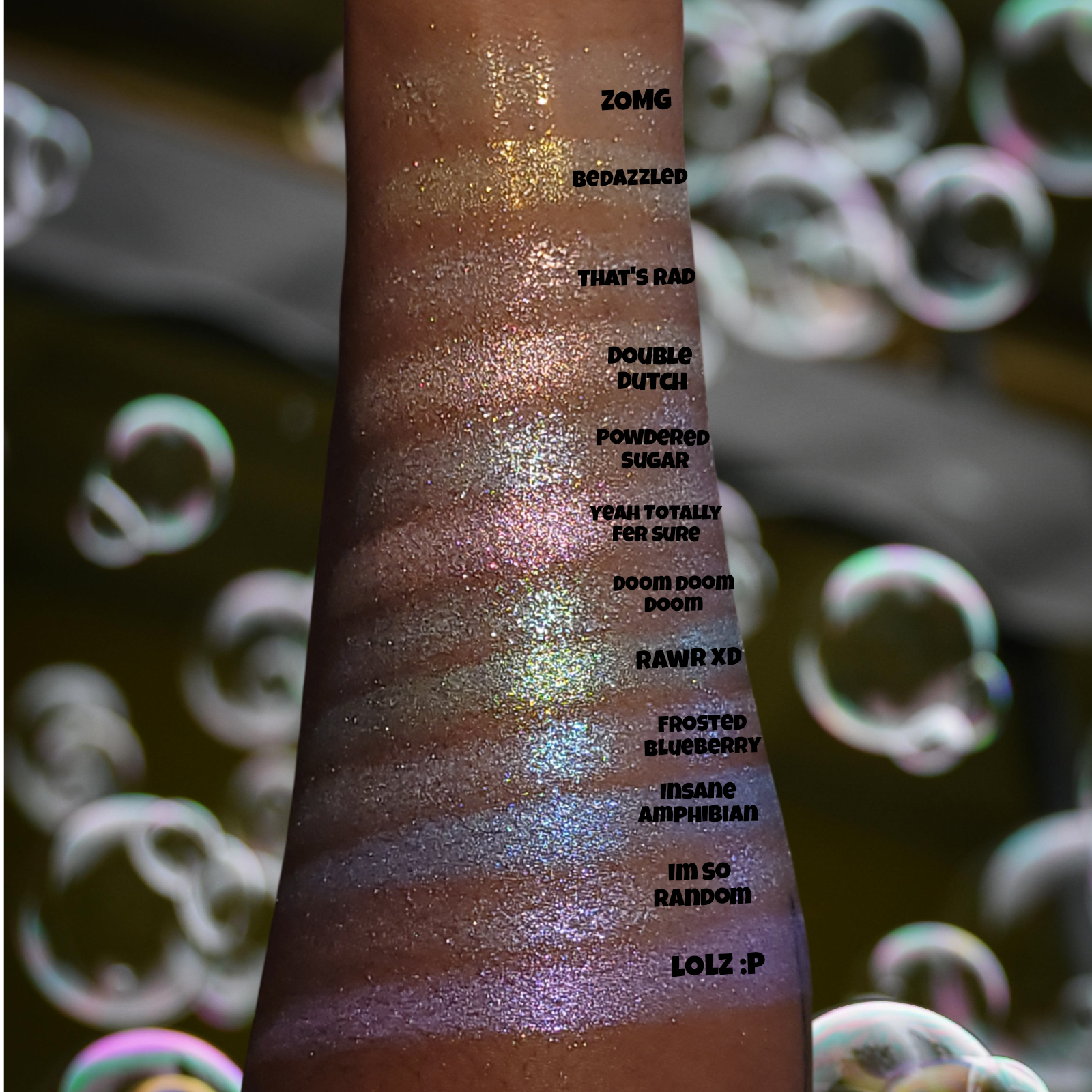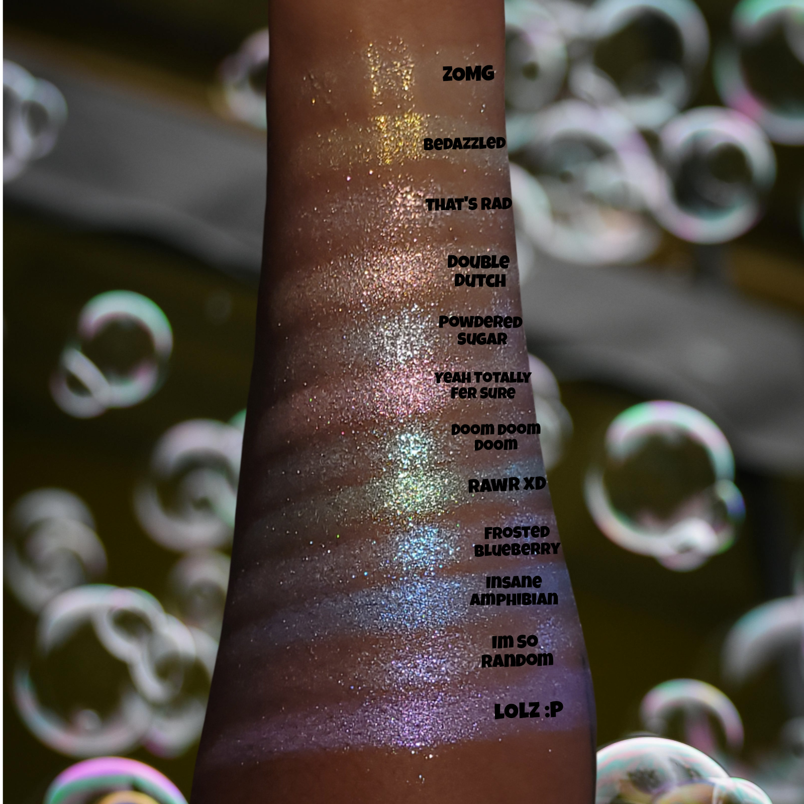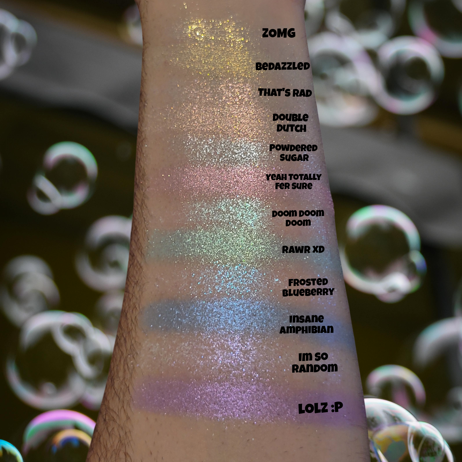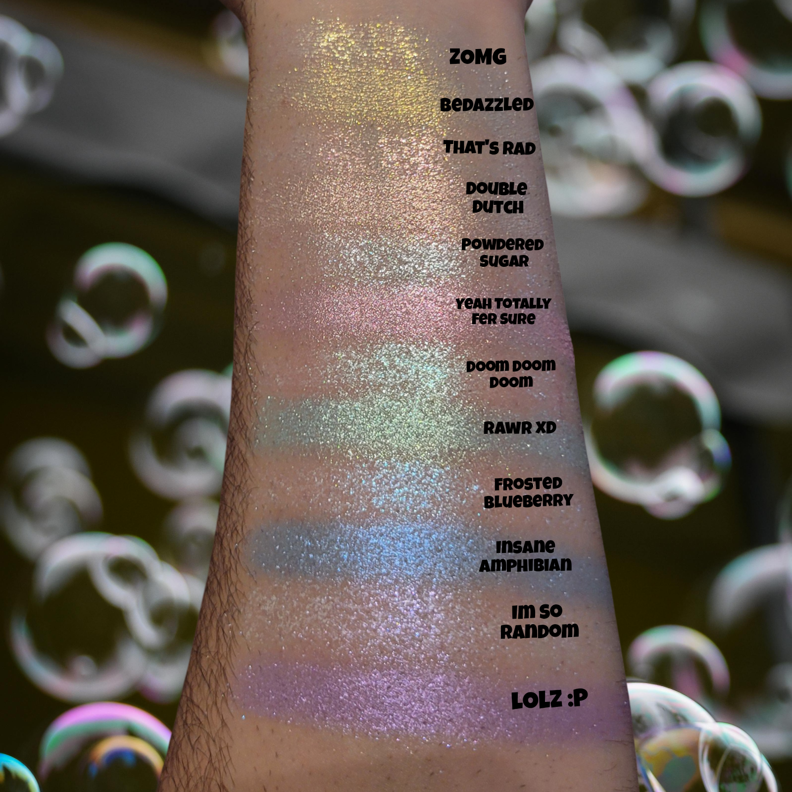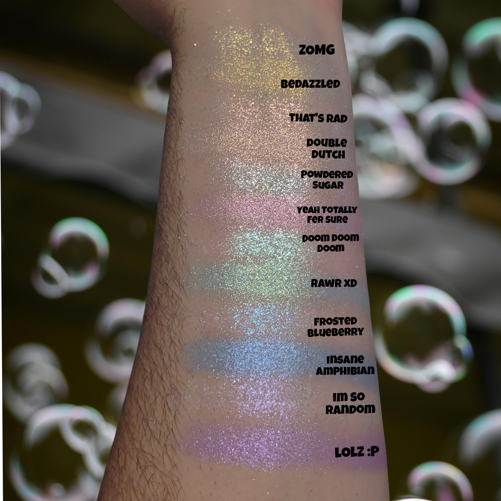 Yeah Totally Fer Sure is a pink shimmery eyeshadow. Smaller in particle size and very smooth and sparkly!