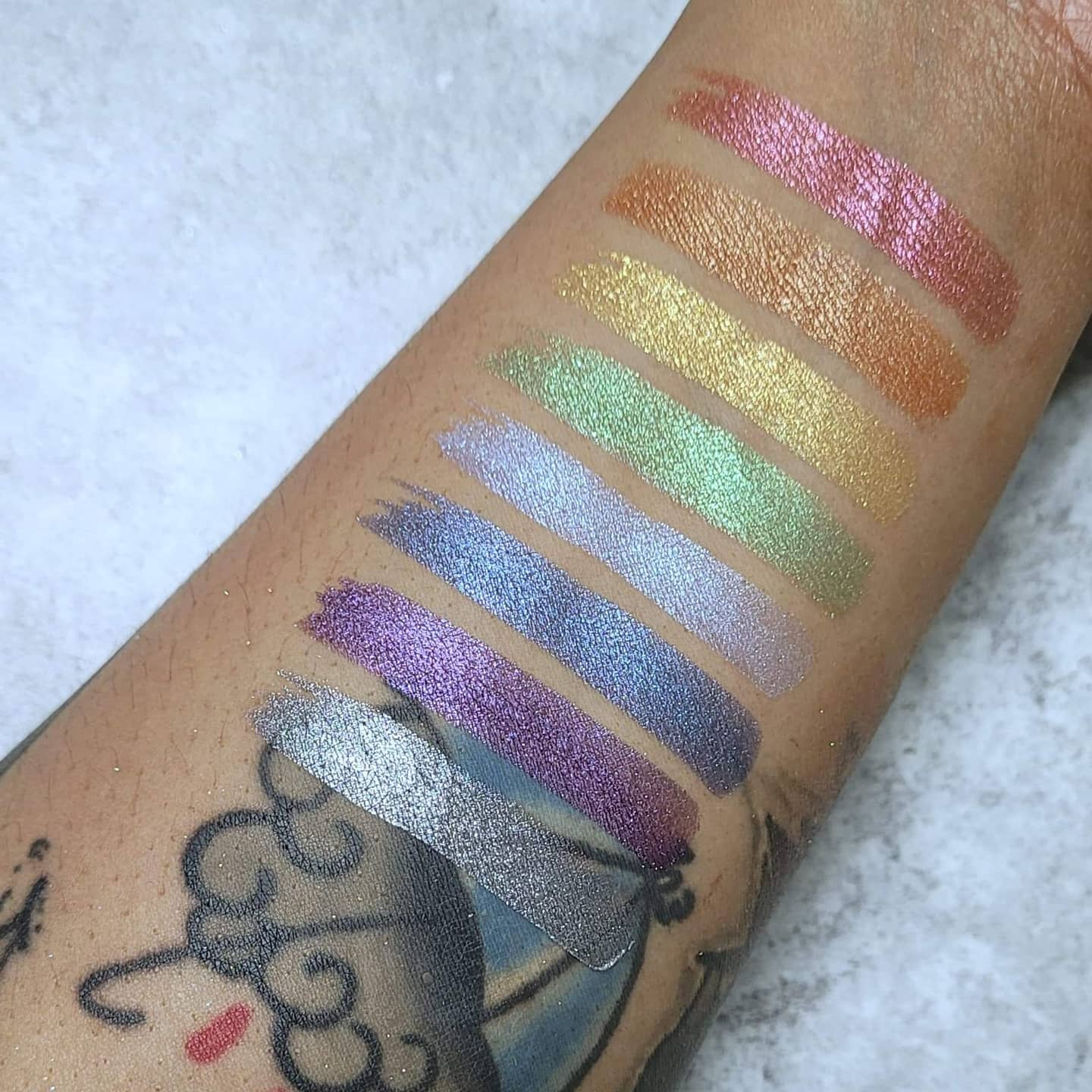 Amethyst is a deep purple eyeshadow with bright purple sparkles. Made with an extra boost of natural mineral glitter giving this a beautiful shine! A primer is recommended for this shade to achieve the best pigmentation. Each eyeshadow pan is magnetic and comes in 26mm, the size of a quarter. This is a pressed product, making it easy to apply with your favorite brush or even your finger.