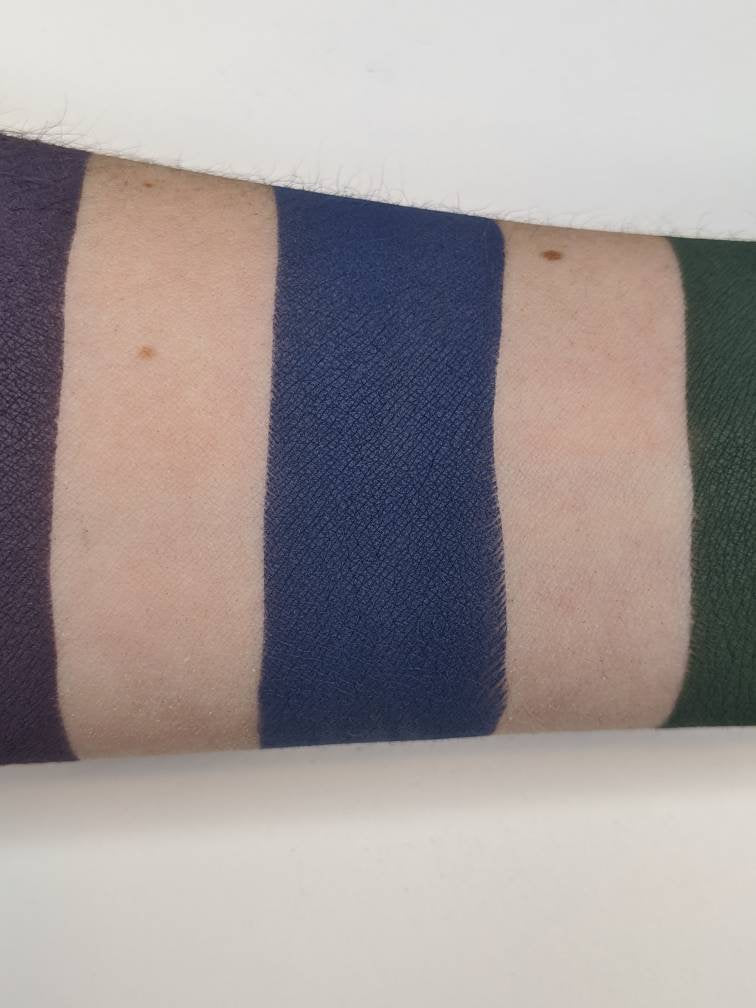 Blue Note is a dark blue matte eyeshadow! Very soft and blend-able for an easy application! Use your favorite primer to make these mattes POP!Each eyeshadow pan is magnetic and comes in 26mm, the size of a quarter. This is a pressed eyeshadow, making it easy to apply with your favorite brush or even your finger. My mattes are formulated to have a bit of kickup but are very pigmented, a little goes a long way!