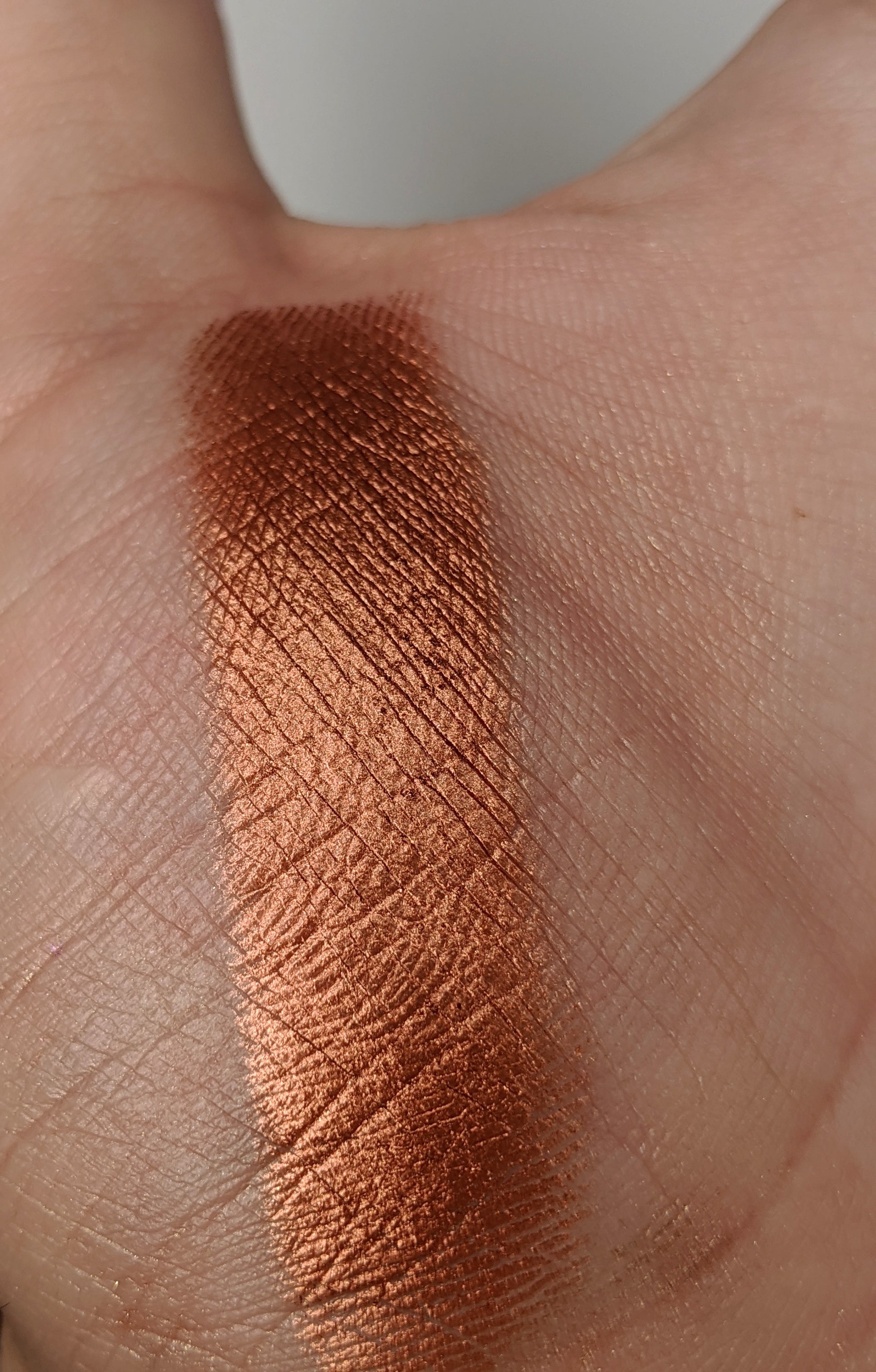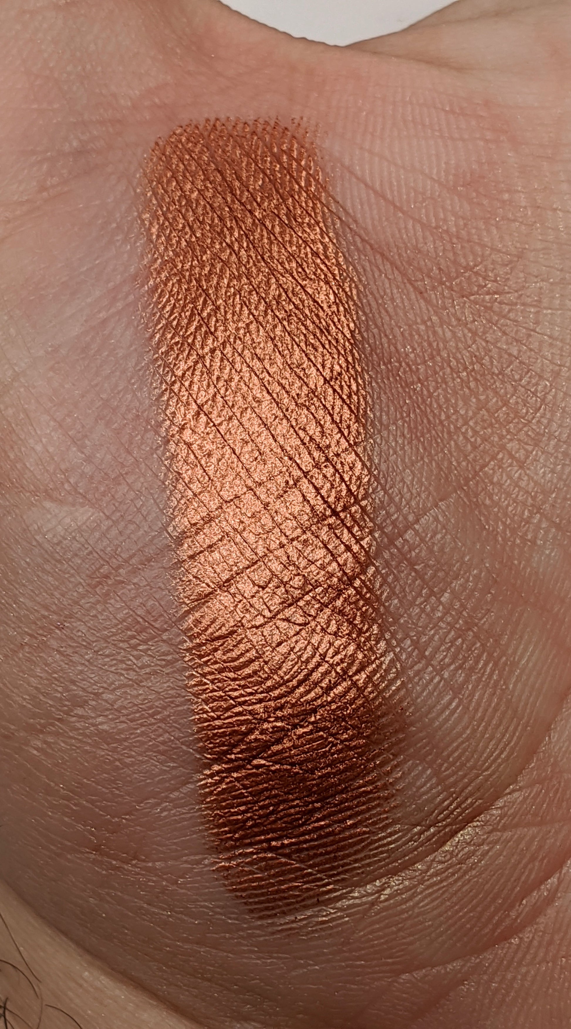 Chai is a beautiful and shimmery golden tan/bronze eyeshadow with hues of red giving it some brassy tones. Each eyeshadow pan is magnetic and comes in 26mm, the size of a quarter. This is a pressed product, making it easy to apply with your favorite brush or even your finger.