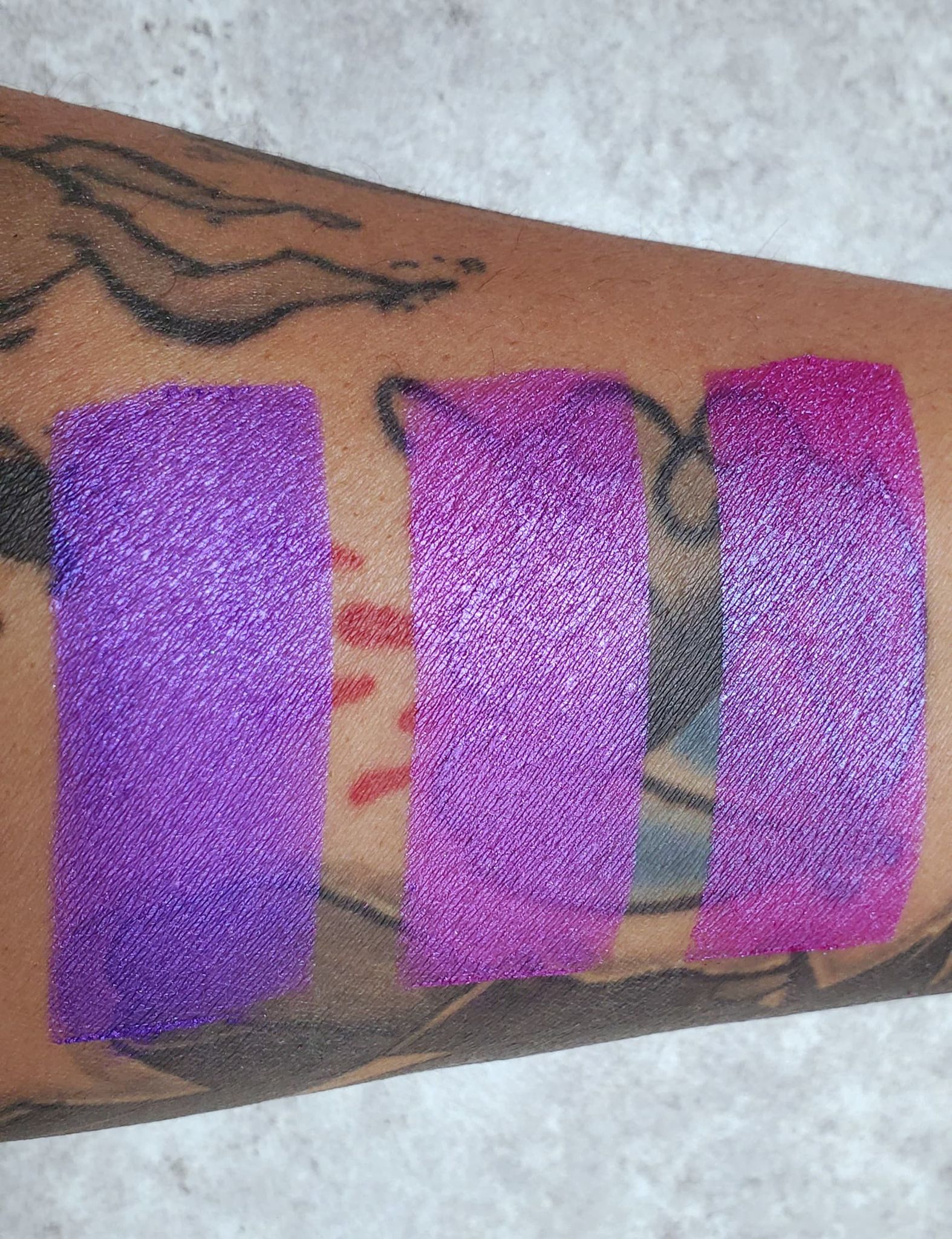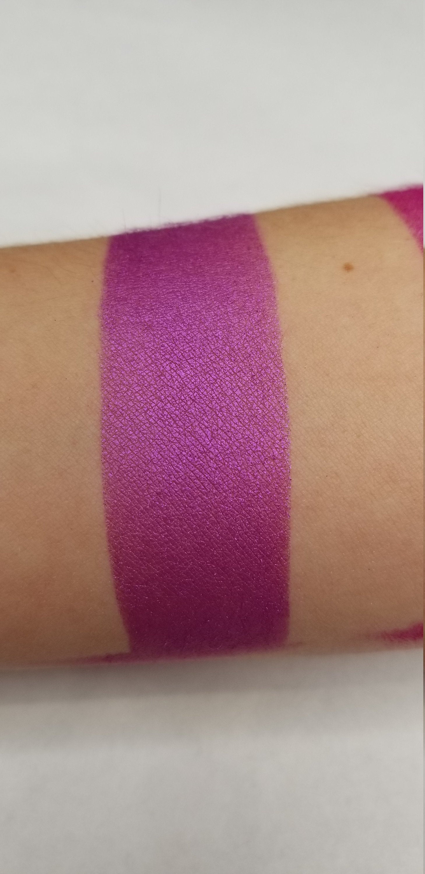Claret is a gorgeous violet purple shimmery eye shadow! Each eyeshadow pan is magnetic and comes in 26mm, the size of a quarter. This is a pressed product, making it easy to apply with your favorite brush or even your finger.