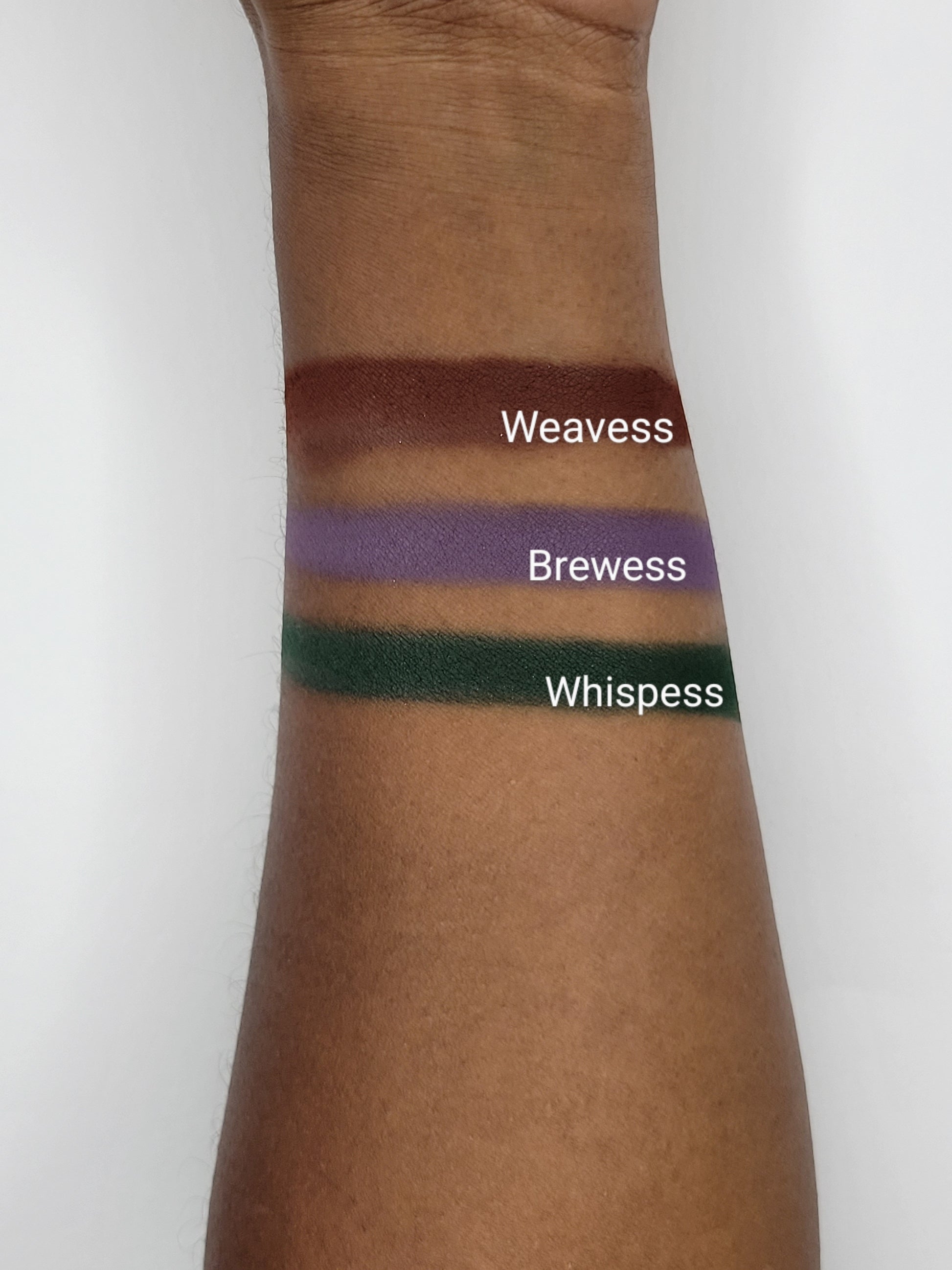 Whispess is a deep green matte eyeshadow. Use your favorite primer to make these mattes POP! Each eyeshadow pan is magnetic and comes in 26mm, the size of a quarter. This is a pressed eyeshadow, making it easy to apply with your favorite brush or even your finger. My mattes are formulated to have a bit of kickup but are very pigmented, a little goes a long way!